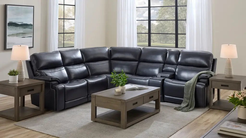 The Presley 6-pc. power sectional can whisk you away to a deep state of relaxation with the simple push of a button. Let your worries melt away as you adjust your position and unwind after a long day. With a rich, inky hue that exudes sophistication, this isn't just a power sectional-it's your new go-to living room piece.