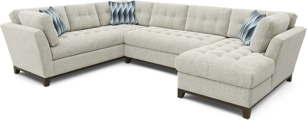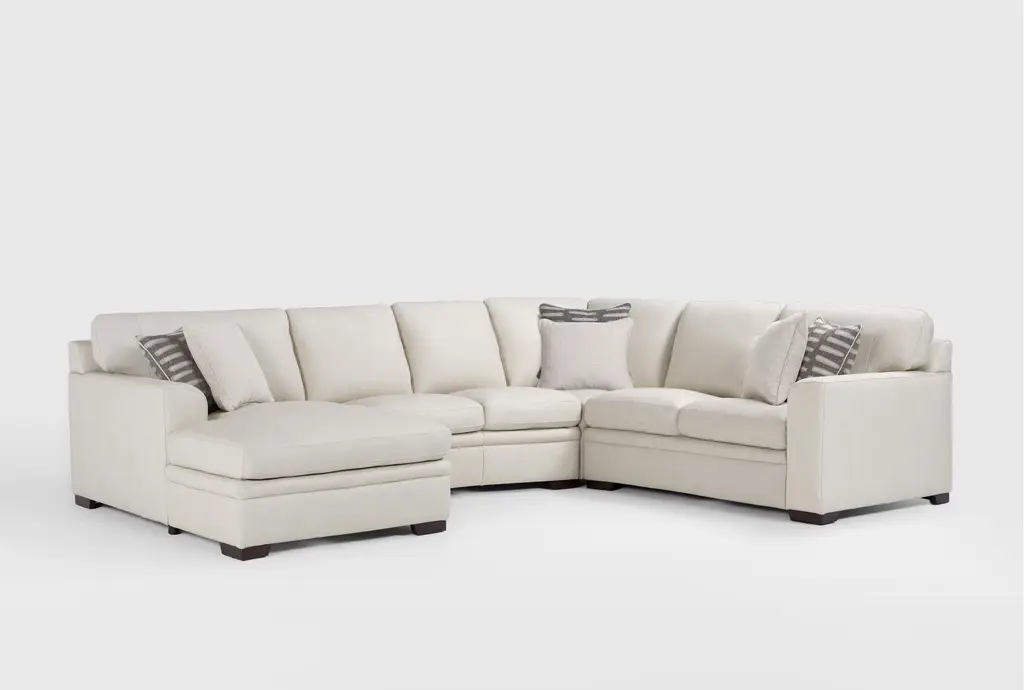 Luxurious and spacious, our Prestige down sectional will make you want to curl up and unwind. Plush down-blend cushions, including a massive chaise, invite you to make yourself at home, while soft upholstery and stylish accent pillows keep you comfy. Through our Special Order program, you can customize the fabrics and configuration at no extra cost.