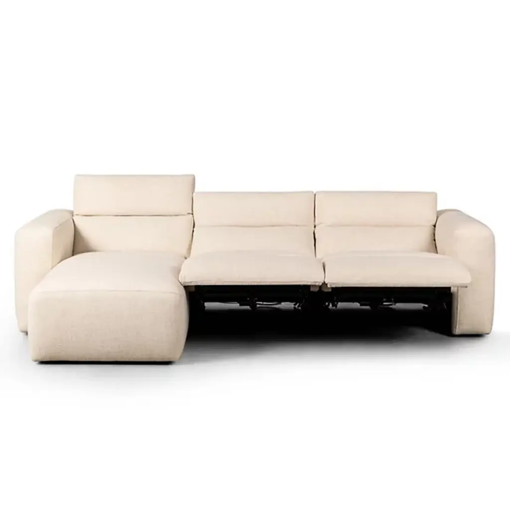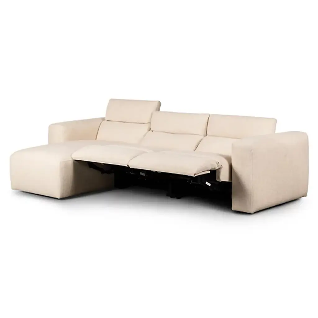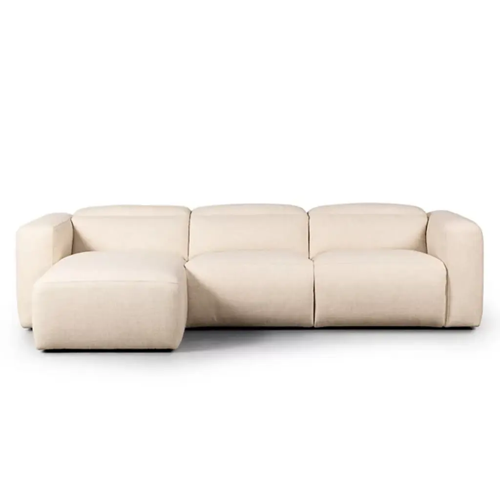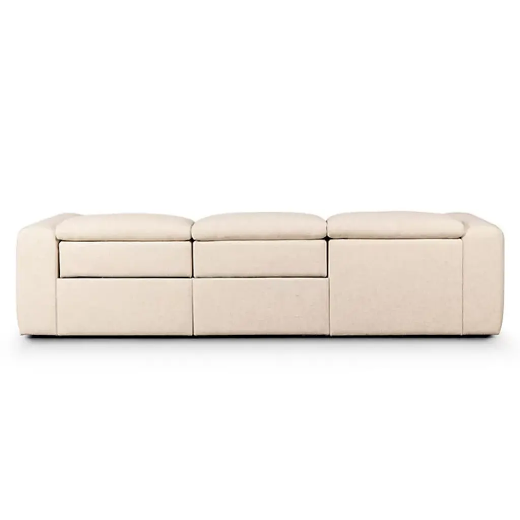 The Radley Power Recliner 3 Sectional with Chaise from Four Hands is a modern interpretation of the classic recliner that offers a blend of style and comfort. The sectional features wide arms and provides a medium to supportive sit and seat height for a cozy experience. Its zero-clearance design allows it to be placed right against a wall, maximizing space efficiency. Crafted with performance fabrics, this sectional is built to resist spills, stains, and heavy use, ensuring long-lasting comfort and exceptional durability for your home.