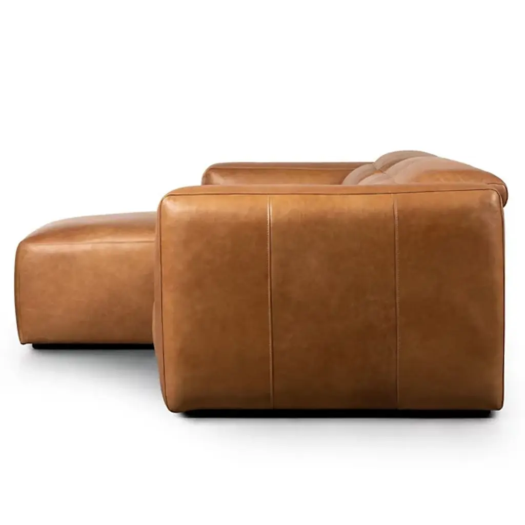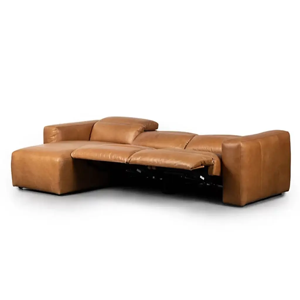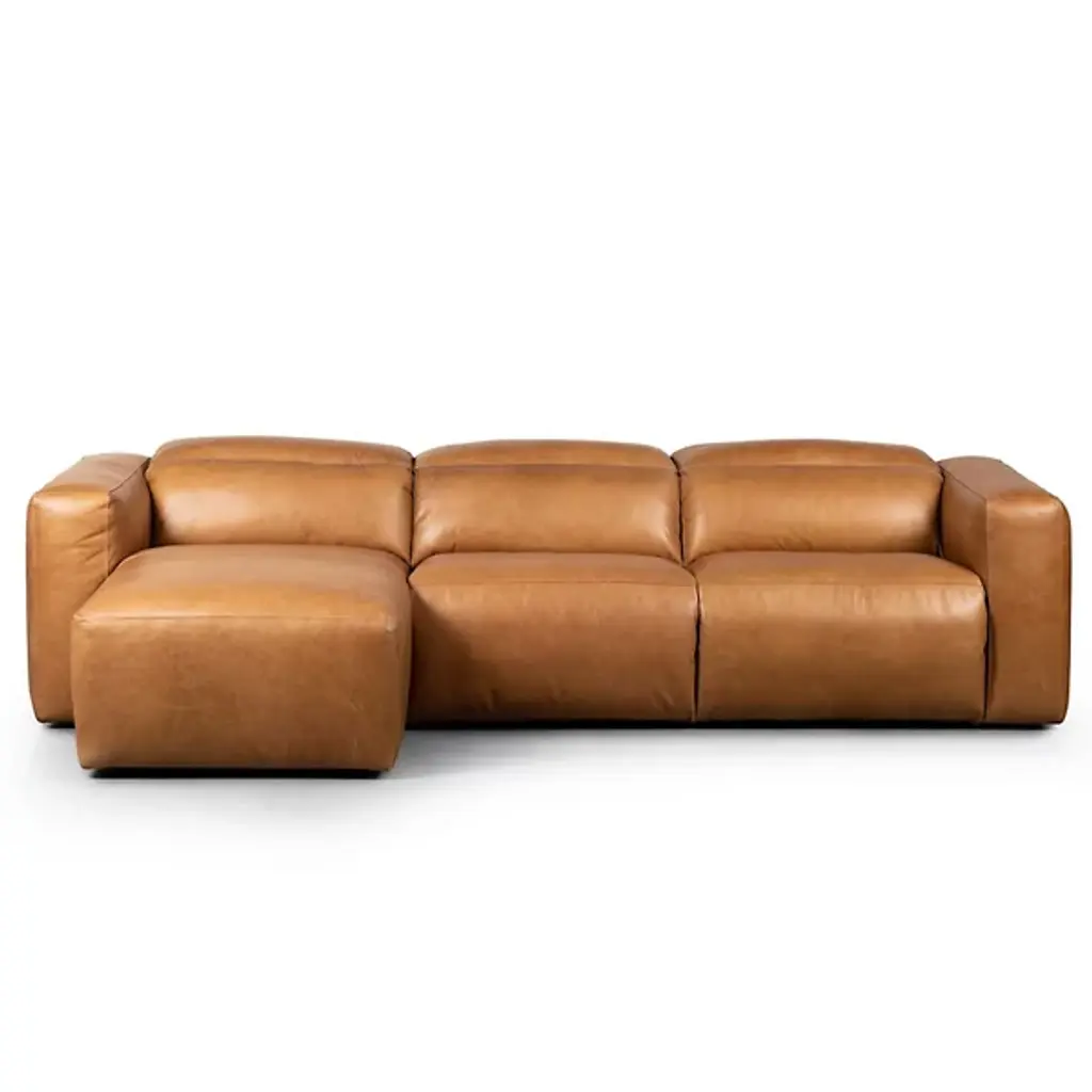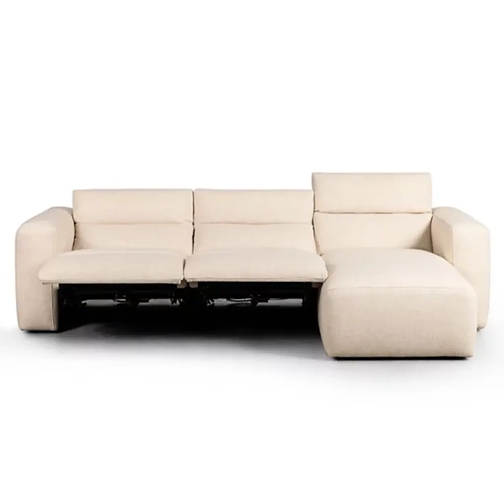 The Radley Power Recliner 3 Sectional with Chaise from Four Hands is a modern interpretation of the classic recliner that offers a blend of style and comfort. The sectional features wide arms and provides a medium to supportive sit and seat height for a cozy experience. Its zero-clearance design allows it to be placed right against a wall, maximizing space efficiency. Crafted with performance fabrics, this sectional is built to resist spills, stains, and heavy use, ensuring long-lasting comfort and exceptional durability for your home.