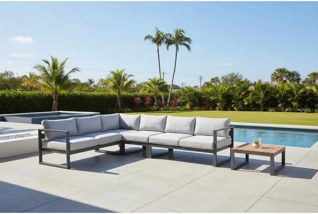 Ravelo Natural Grey Outdoor 4 Piece 122" Sectional | Fabric | Deep Seated | Modular