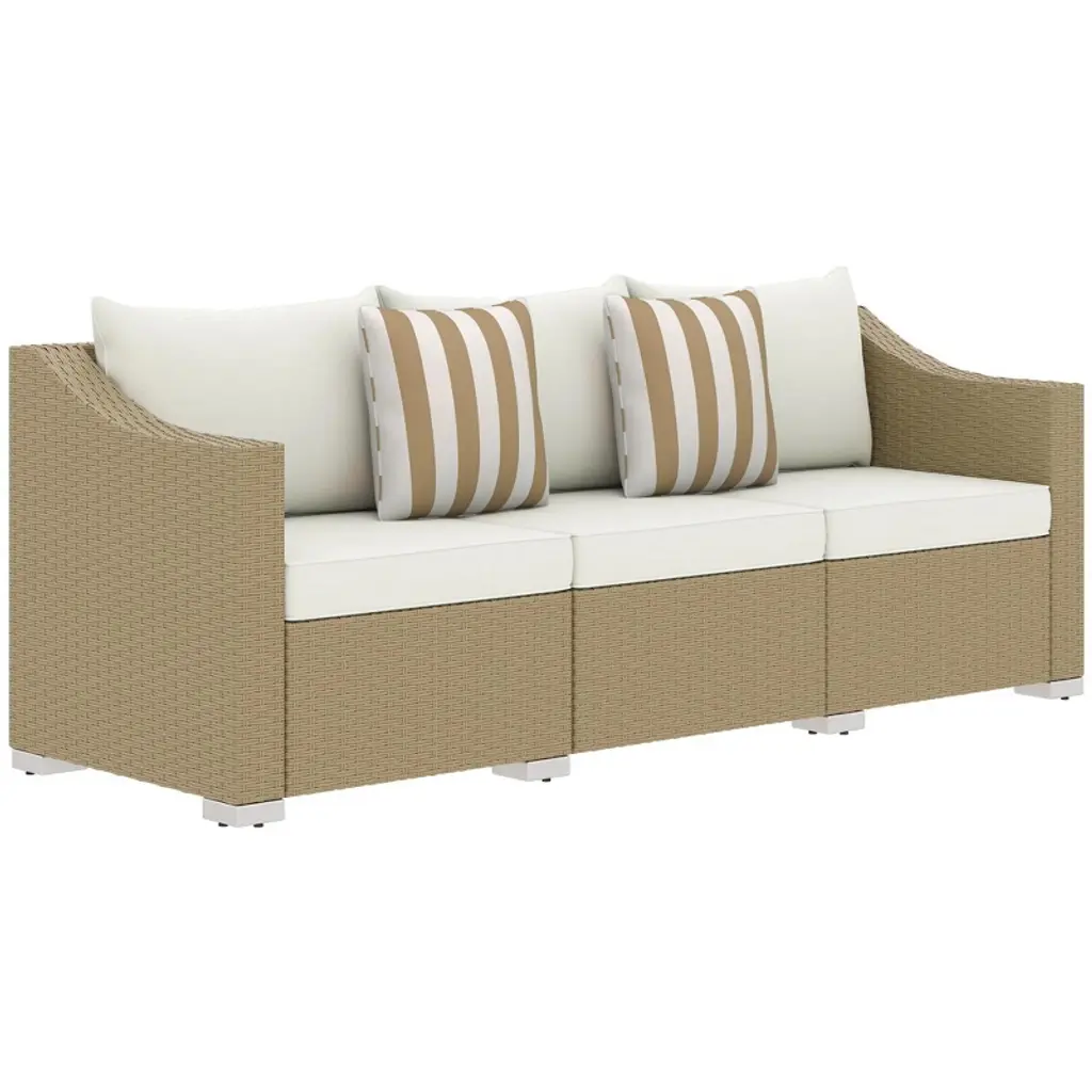 Resenkos 3 Seater Patio Couch, Outdoor Sectional Furniture, Pe Rattan, White
