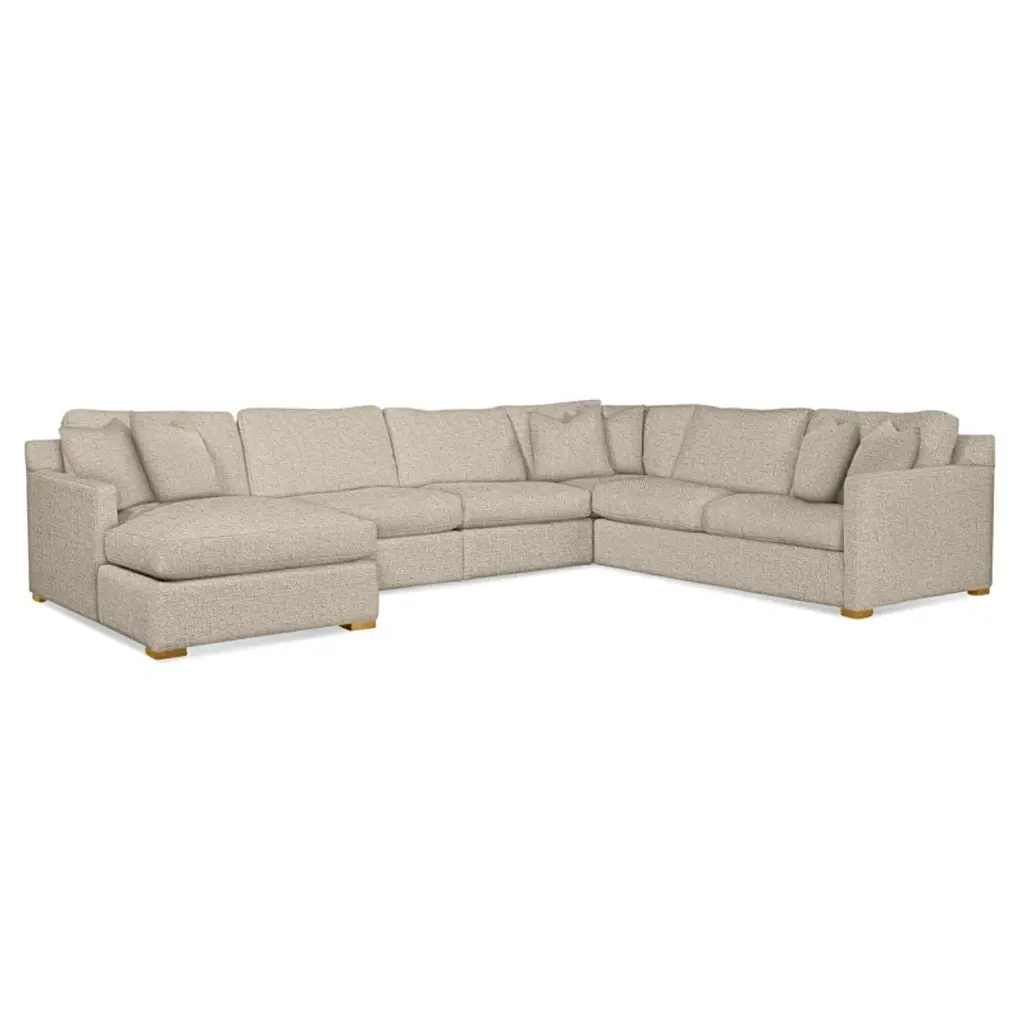 Comfy, classic, and generously-sized: pile on the fam and friends! A loungier take on our Rio Collection, Rio Plush Corner Sectional features a deeper seat and higher seat height for extra room and back support. Its classic silhouette and modern, clean lines fit neatly into any decor situation. Handcrafted in the USA to your specifications for flexible styling options.