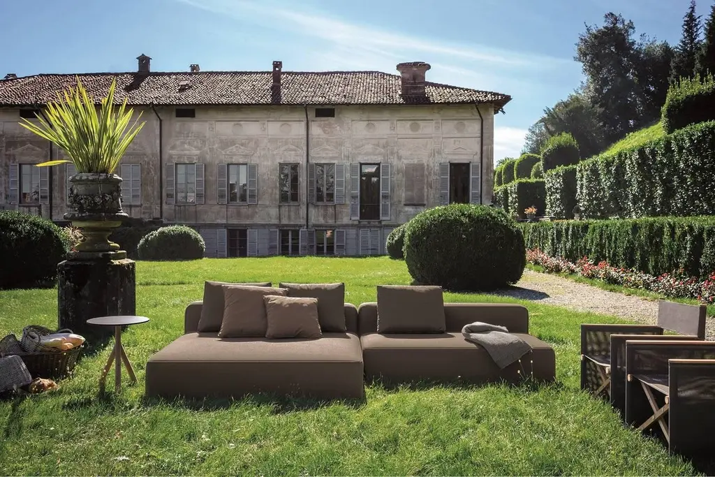Overview:Dandy is the new revolutionary outdoor system by Roda, which includes all the functions of a textile sofa for indoor use, so intimate and familiar, in a completely new proposal for outdoor. Designed by the unmistakable talent of Rodolfo Dordoni, DANDY is characterized by the versatility of its design, the technological innovation processes and the highest quality of materials used. The "soul” of DANDY consists of an aluminum frame, lightweight but extremely strong, hidden by a padding with a "total outdoor technology " completely draining , breathable, and weather resistant. The covers, fixed to the structure, are easily removable to be stored during the winter season, or to be cleaned.Details:The Hydro Draining Technology: The upholstered collections have perfected the notion of breath ability in hydro draining cushions, attaining the highest level of complexity and efficiency. For the upholstered collections, RODA combines open-cell polyurethanes of different.Dimensions: W 300cm x D 152cmPillows included:(1) Dandy back pillows 60 x 48cm / fabric: plot D01 sand(1) deco 606 throw pillow 60 x 60cm / fabric: plot D01 sand(1) deco 606 throw pillow 60 x 60cm / fabric: hive F02 peanut fabric(1) deco 606 throw pillow 60 x 60cm / fabric: hive F03 oil fabric(1) deco 505 throw pillows 50 x 50cm / fabric: plot D01 sand(1) deco 505 throw pillows 50 x 50cm / fabric:hive F03 oil fabric.