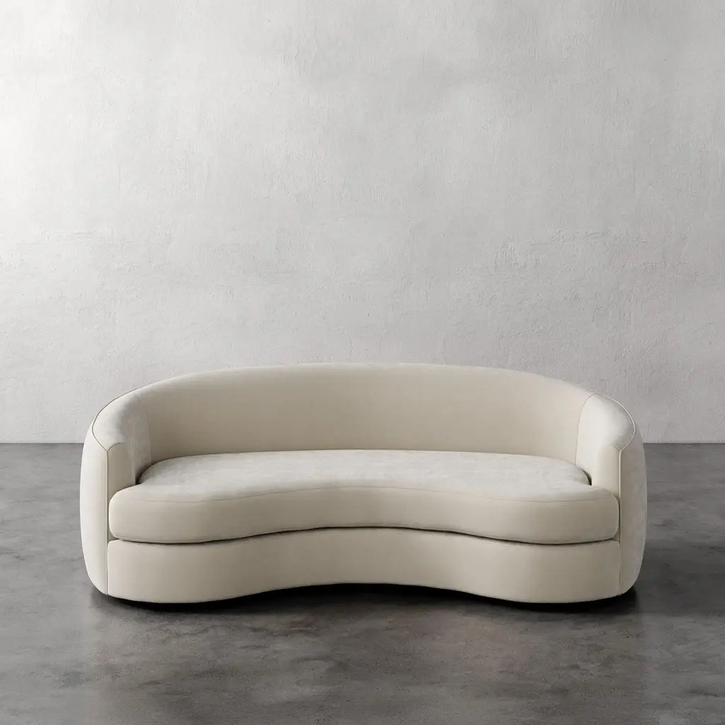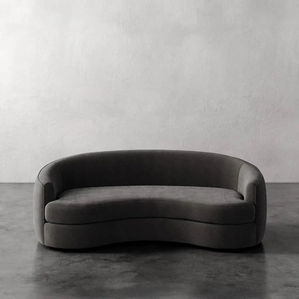 Drawn from the ethos of mid-century organic modernism, the Rulmann Collection embodies the curvilinear genius of Kagan, Royère, and Noguchi. Each module is sculpted, low-slung, and materially grounded, inviting personal reconfiguration. Sofa becomes chaise becomes multi-piece conversation sectional. Modularity is not a function, but a philosophy, a living system of sculpture and repose.Handcrafted in North Carolina, Rulmann is available in multiple modular components. Designed for permanence, built for expression.This listing is for the sofa upholstered in any of our plush velvet fabrics. There are 4 color options, a "Strie' Bisque", a "Strie' Mink", a plush smooth Indigo, and a plush smooth Graphite. Please contact us if you are interested in other fabric options. We also have it available in many velvet colors and boucles in a separate listing.