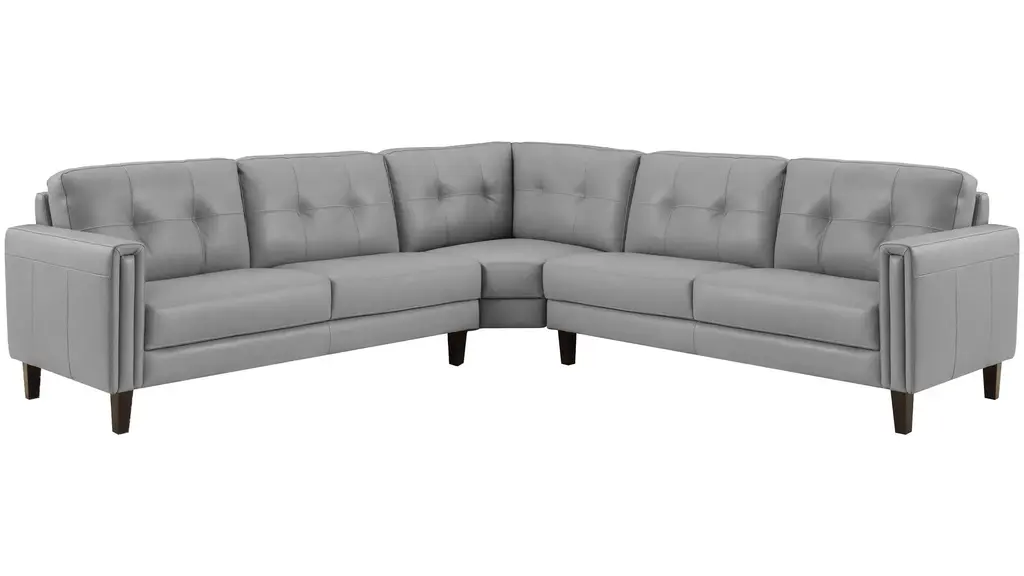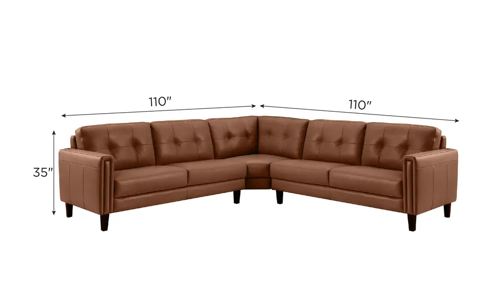 Loads of comfort and class await with the Salerno 3-pc. Sectional Sofa. This neatly tailored piece features a stunning Italian leather blend and streamlined track arms for a beautiful modern look.