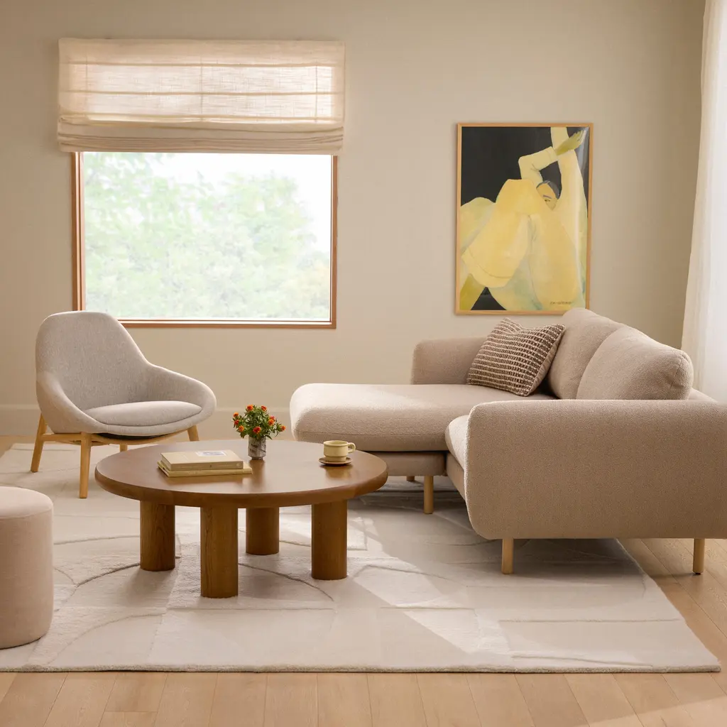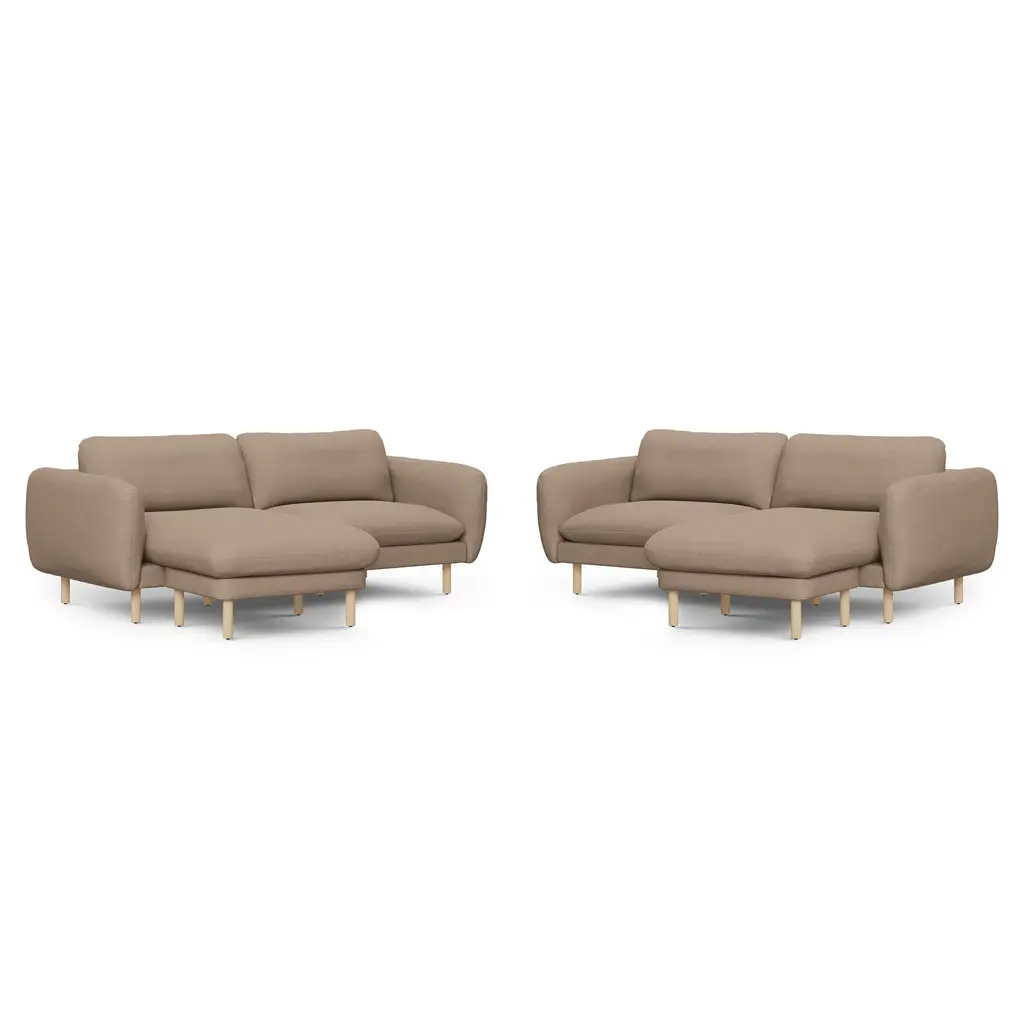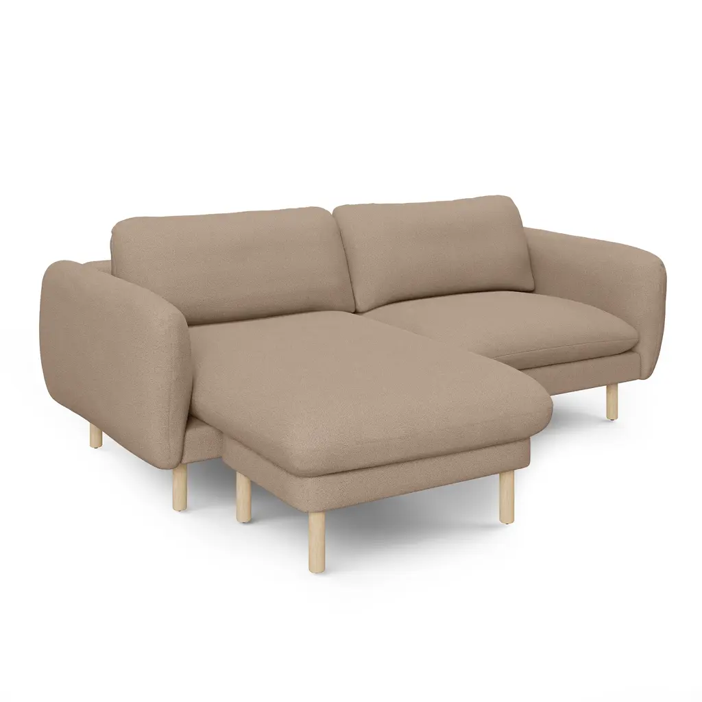 More beautiful than the sum of its parts. The Sanders reversible sofa comprises striking panels that make for a simple silhouette with interesting design details. Love experimenting with new living room layouts? Customize your chaise to the left or right by shifting the ottoman and chaise cushion. Loose base and back cushions make this sofa easy to care for, and also great for building forts. And who doesn’t want a stylish, versatile, Scandi-inspired sofa that transforms into a beautiful fort?