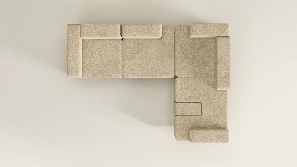 The Sarsen Series, designed by MKCA for TRNK Collection, embraces the dynamic interplay of objects, while emphasizing articulation and open-endedness. Drawing inspiration from joinery, the seating’s asymmetrical distribution of heft and lift ensures visual continuity throughout limitless configurations. The irregular shapes of the rugs reinforce the multidirectional nature of the collection, intending to ground a space without giving it hard boundaries. The Sarsen Series highlights the transformative power of elements in shaping function, habitation, and interaction.