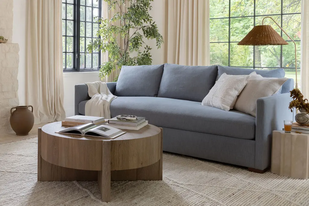 Modern design meets transitional details in our new Scarlett collection. Thoughtfully designed to complement all aesthetics, Scarlett pairs a modern silhouette with unmatched coziness. Each piece features a sleek bench cushion, slim track arm, plush back cushions, and matching throw pillows. Choose a sofa, sectional, chair or ottoman, all customizable in 50 fabrics, three leg styles and two cushion fills. And best yet, we're proud to call it our fastest custom collection--Scarlett will arrive at your home in 6-8 weeks. To prevent movement, sectionals in this collection come with anti-skid feet. Designer Expert Tip: Scarlett's gel plush cushion fill option is wrapped in memory foam for our softest down-free sit.