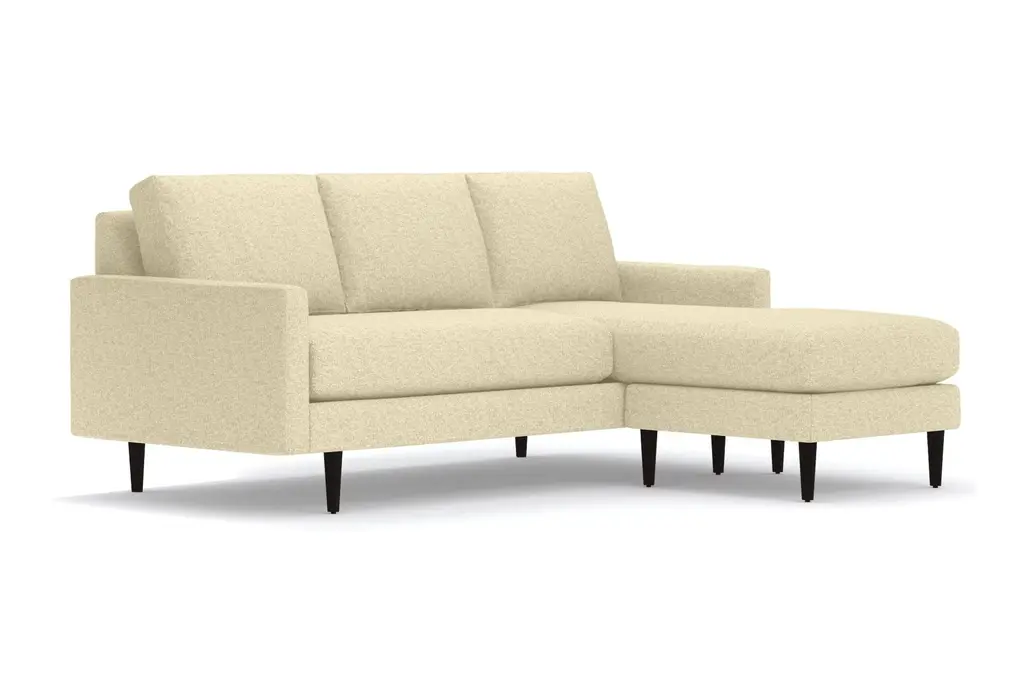 The Scott Reversible Chaise Sofa is a sophisticated sofa with practical versatility. It only takes one look to fall in love with the Scott's undeniably Mid-Century Modern charm. Sharp lines, sleek angles, and precise detailing provide the Scott with its clean look. These details are also what makes the Scott a timeless design. It looks as good in a retro Palm Springs resort as it does in a contemporary Chicago loft. The Scott Reversible Chaise Sofa features a "floating" ottoman and a long chaise cushion that can be easily moved to either side of the sofa. Perfect for people who like to rearrange their living spaces or for an apartment. The Scott is one of Apt2B's trademark chemical free sofas that's built to order in our downtown Los Angeles factory (made in the USA!) and is available in our incredible line of kid friendly and pet friendly fabrics.