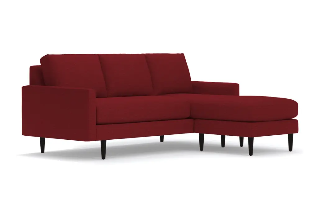 The Scott Reversible Chaise Sofa is a sophisticated sofa with practical versatility. It only takes one look to fall in love with the Scott's undeniably Mid-Century Modern charm. Sharp lines, sleek angles, and precise detailing provide the Scott with its clean look. These details are also what makes the Scott a timeless design. It looks as good in a retro Palm Springs resort as it does in a contemporary Chicago loft. The Scott Reversible Chaise Sofa features a "floating" ottoman and a long chaise cushion that can be easily moved to either side of the sofa. Perfect for people who like to rearrange their living spaces or for an apartment. The Scott is one of Apt2B's trademark chemical free sofas that's built to order in our downtown Los Angeles factory (made in the USA!) and is available in our incredible line of kid friendly and pet friendly fabrics.