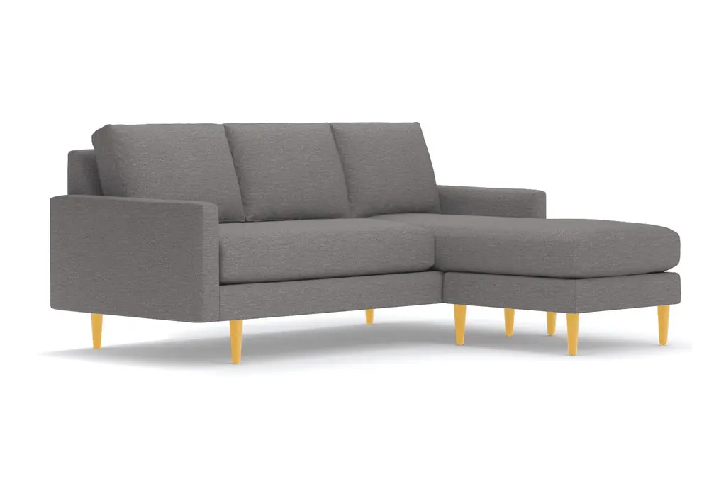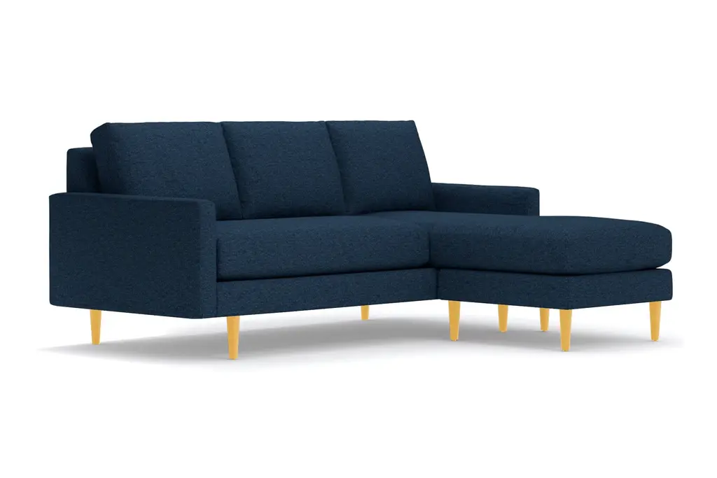 The Scott Reversible Chaise Sofa is a sophisticated sofa with practical versatility. It only takes one look to fall in love with the Scott's undeniably Mid-Century Modern charm. Sharp lines, sleek angles, and precise detailing provide the Scott with its clean look. These details are also what makes the Scott a timeless design. It looks as good in a retro Palm Springs resort as it does in a contemporary Chicago loft. The Scott Reversible Chaise Sofa features a "floating" ottoman and a long chaise cushion that can be easily moved to either side of the sofa. Perfect for people who like to rearrange their living spaces or for an apartment. The Scott is one of Apt2B's trademark chemical free sofas that's built to order in our downtown Los Angeles factory (made in the USA!) and is available in our incredible line of kid friendly and pet friendly fabrics.