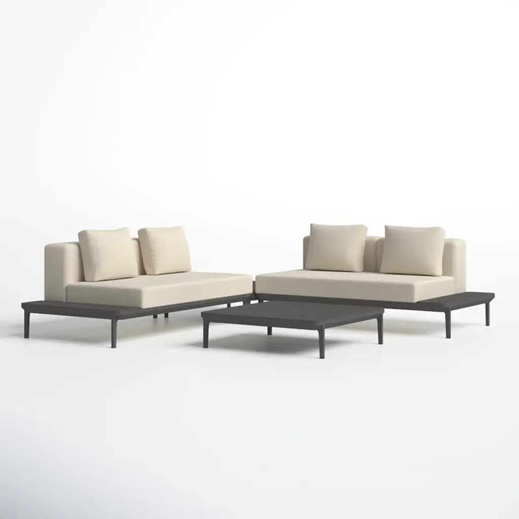 Nooch is a modular seating system whose name is inspired by the tropical botanical garden of Nong Nooch in Thailand. Its key feature is the tubular structure in recycled aluminium, a light and strong material, completely recyclable. A choice inspired by simplicity, which recalls elementary tubular structures and ennobles them with a design that pays attention to every detail. The intersection of the structural elements represents the iconic feature of this collection, with the particular elbow curve achieved by the way the aluminium bends. A design and engineering detail that combines function and beauty. It can be equipped with backrests and armrests and have an aluminium top with slats on which the cushions rest. The paddings are designed with sustainability in mind. The system is completed by a small round service element to be inserted between the cushions to offer further support and a particular backrest/armrest cushion to be inserted between the elements to create inverted and double-sided seats.