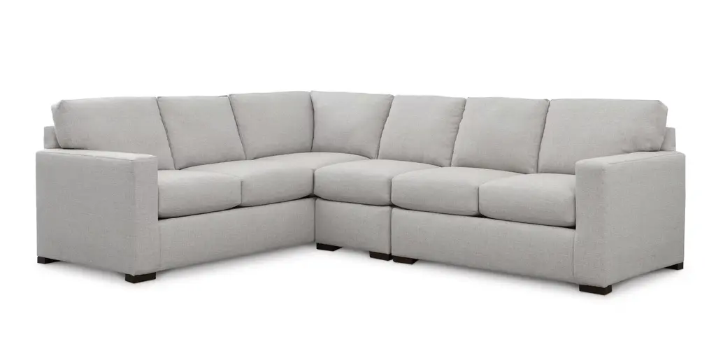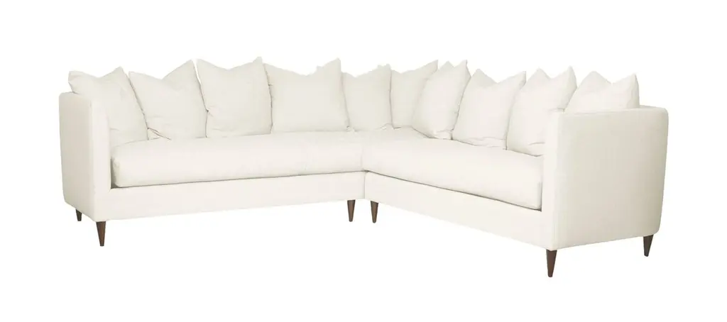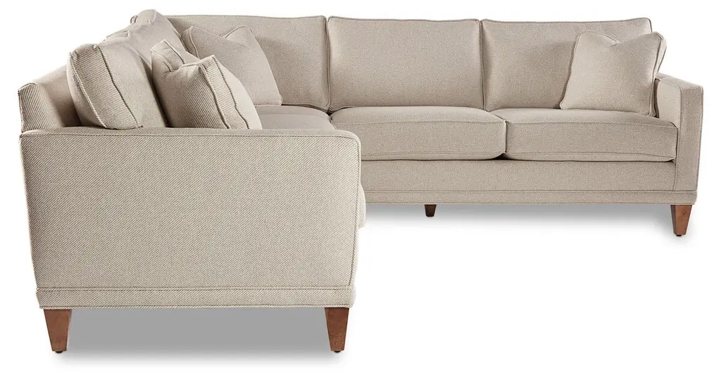 Stylish seating for the entire family: This roomy sectional features a relaxed silhouette with classic track arms and hardwood feet. Amply filled with foam and fiber for the best in comfort and support. Throw pillows included.