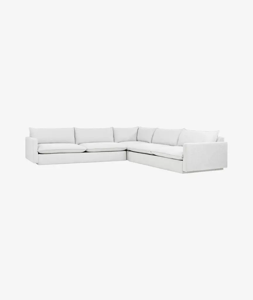 The cloud-like Sola Bi-Sectional is an open invitation to lounge. Embodying the ease of coastal living in a design inspired equally by contemporary Italian design and mid-century classics, Sola is perfect for entertaining or enjoying an afternoon siesta. A plush, expansive seating area, and back cushions filled with our signature, eco-friendly PET fill (made from recycled plastic spun into billowy, synthetic down) means an extra cozy experience. French-seam detailing, stepped arms, and inset legs all subtly contribute to a feeling of weightlessness that will beckon you to sink in after a long day.
