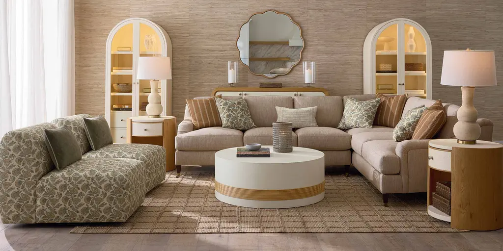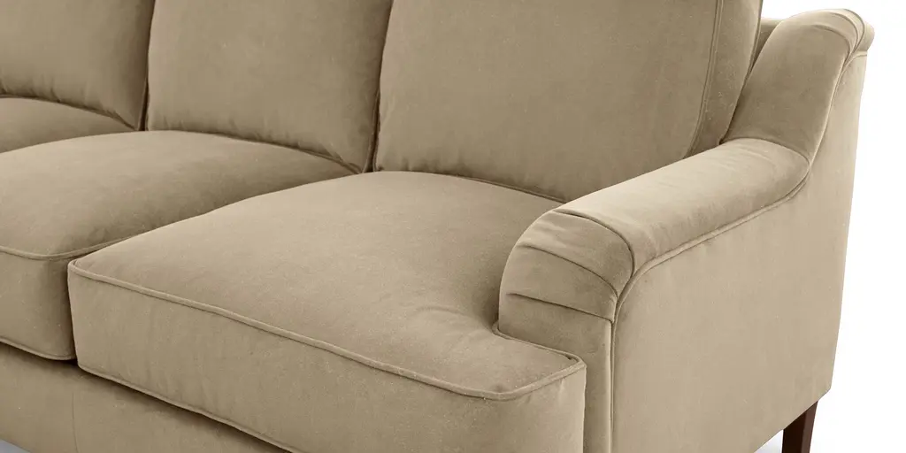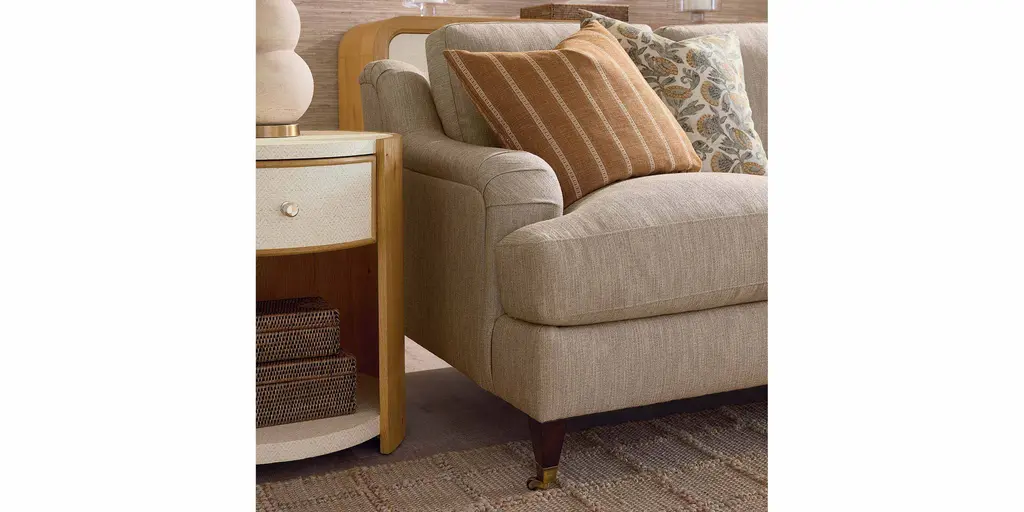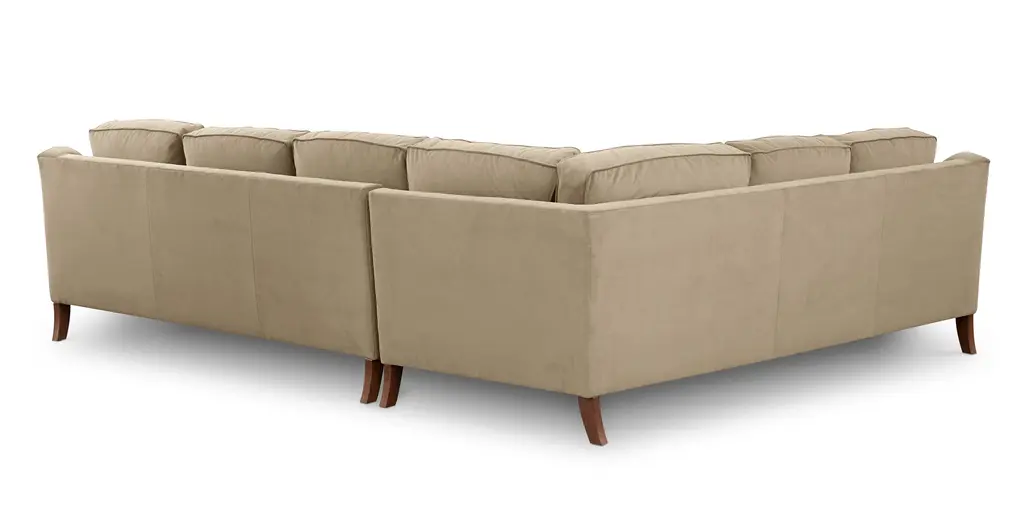 What we love best is often a combination of what was and what can be, and our Stockten English Arm L-Shape Sectional is a perfect example of that. Rooted in heritage design features like blend down cushions and pleated Charles of London arms, the L-shaped Stockten design expands your comfort expo-sectionally. Strategically placed tapered wooden legs are offered in two finishes, with front legs also available in a choice of metal ferrule and casters in brass, bronze, and nickel. Tailoring details for the Stockten sectional are as pictured, but all customizing options are available in-store: variation of sectional pieces, welting, contrast welting, and a full array of designer upholstery fabrics. A Stockten ottoman is also available in-store.