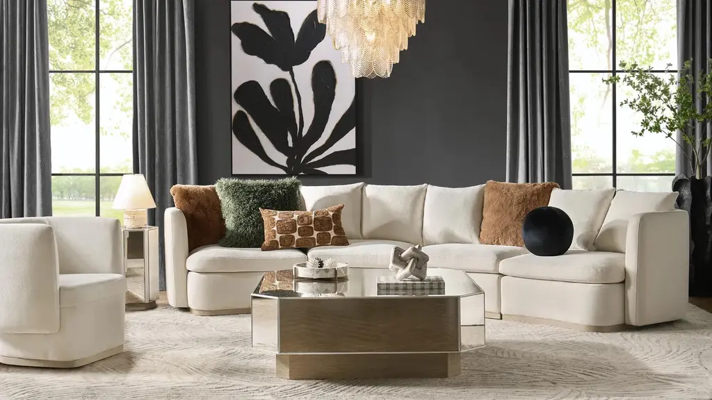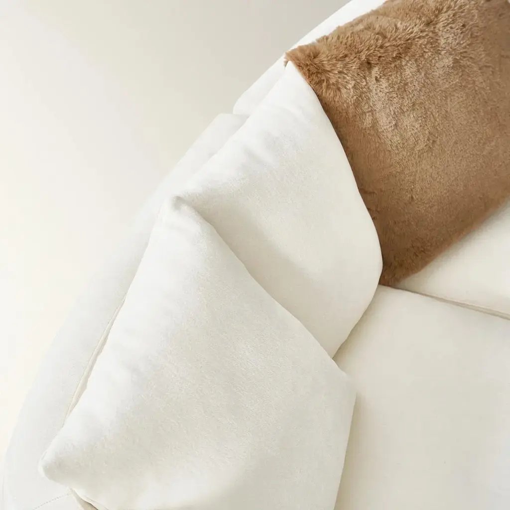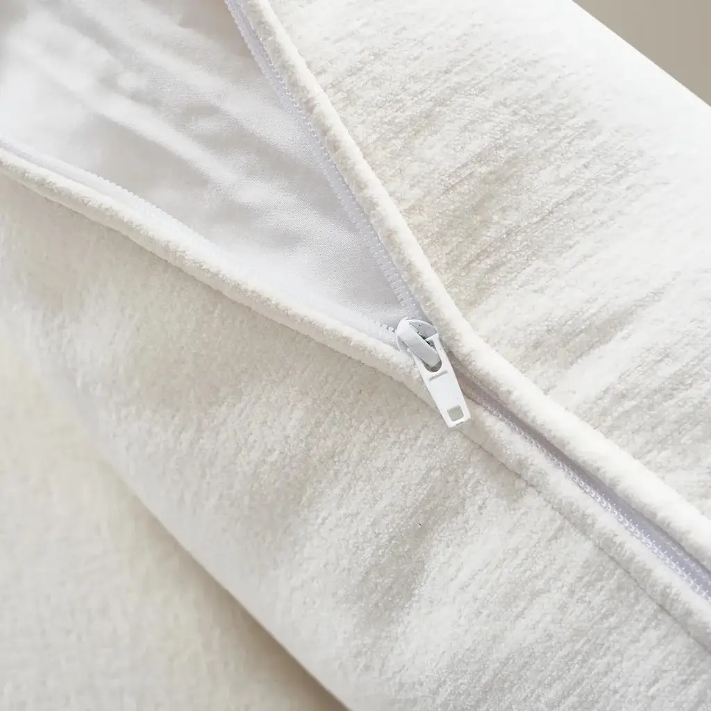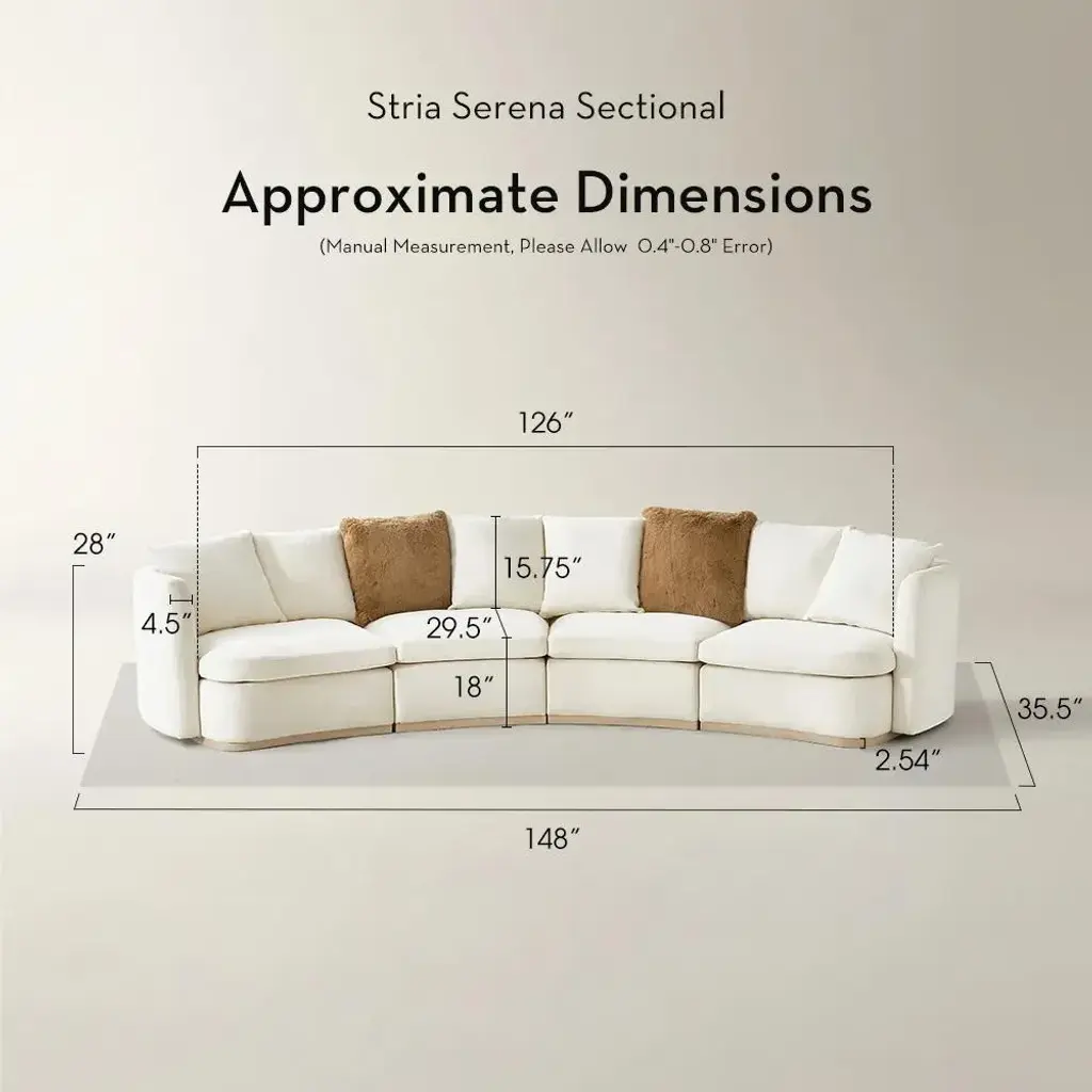 The Stria Sectional in ivory brings a sculptural softness to modern living. Its gracefully curved silhouette invites connection and creates a natural flow within smaller spaces. Upholstered in plush ivory chenille, the surface feels velvety and breathable, combining timeless elegance with durable performance. Each seat features triple-layer cushioning, blending high-density foam for support, down blend for sink-in comfort, and ergonomic shaping for everyday ease. A kiln-dried solid oak frame provides long-term stability, while hand-finished upholstery details elevate the look from functional to refined. This curved ivory sectional sofa is perfect for movie nights, casual lounging, or sophisticated entertaining—all in one compact, beautifully crafted design.ZG Exclusive