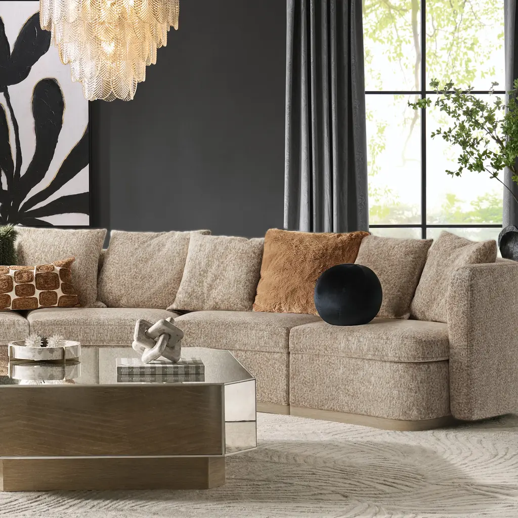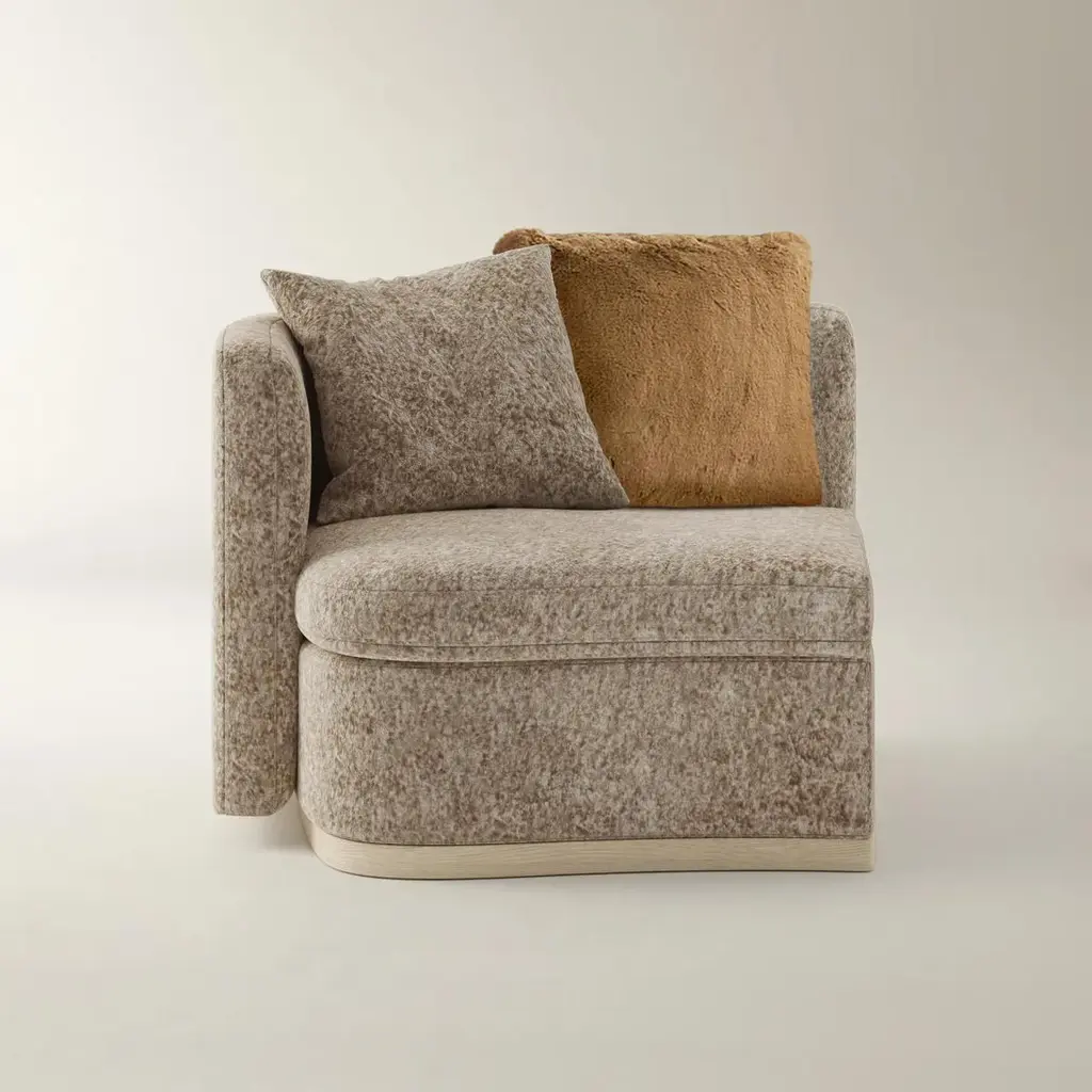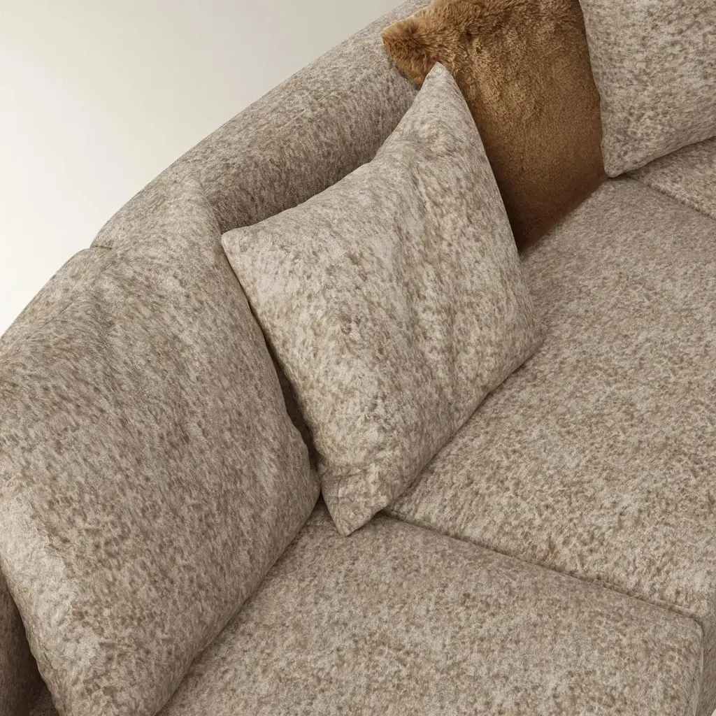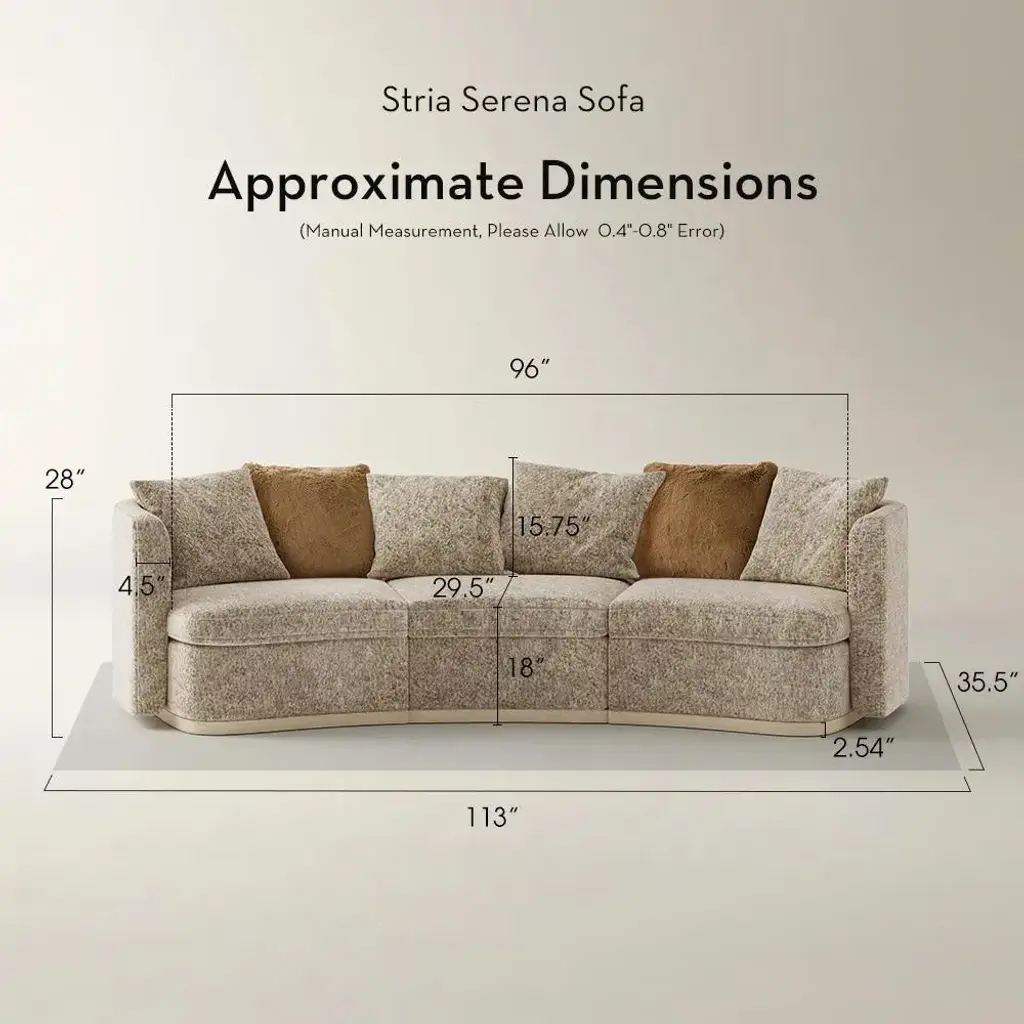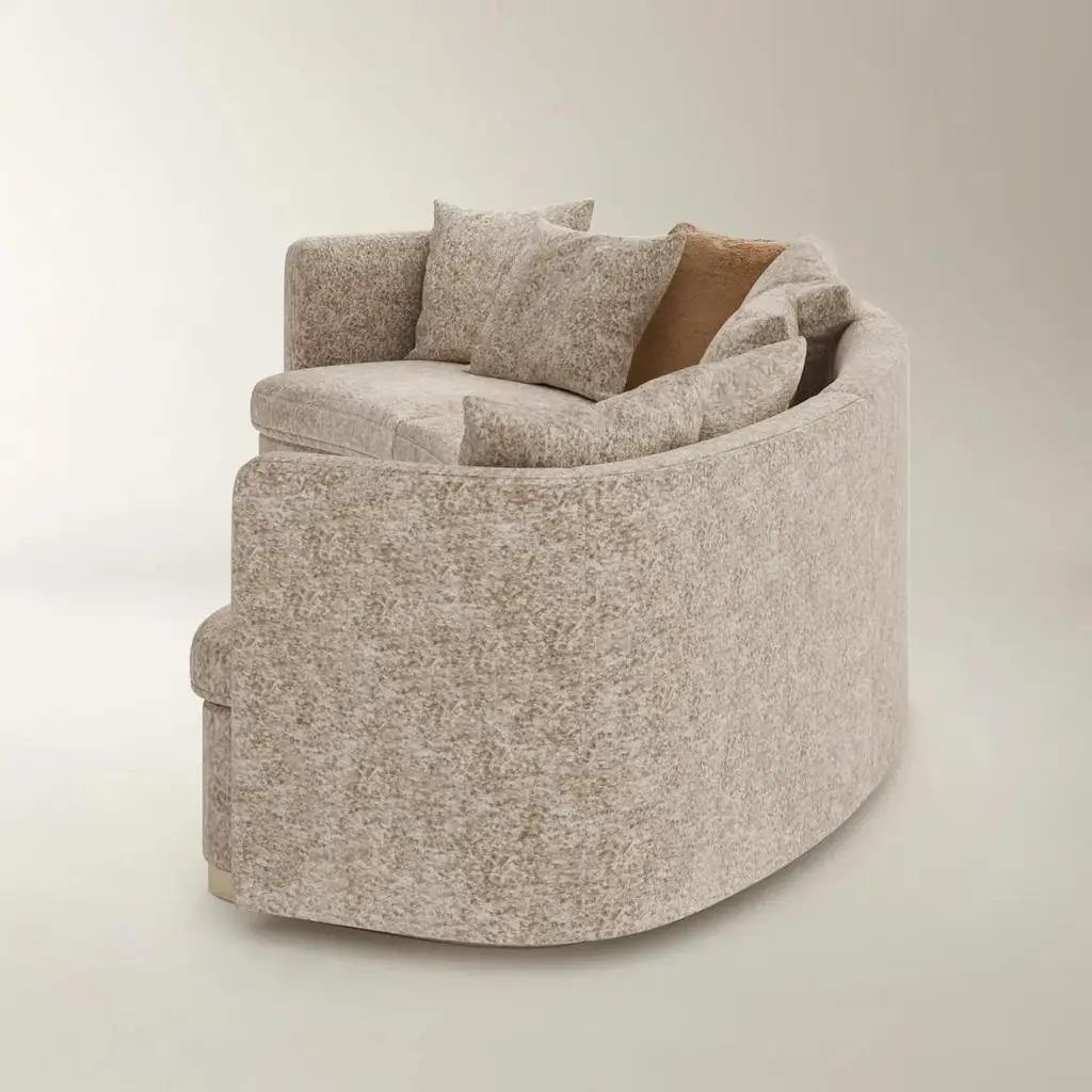 The Stria Sofa in light brown blends earthy elegance with modern curvature. Its arcing silhouette softens the room while encouraging relaxed conversation and cozy lounging. Wrapped in soft chenille with a warm, sun-washed hue, it balances natural texture with plush comfort. Inside, triple-layer cushioning features high-density foam for support, a down blend for body-conforming softness, and an ergonomic frame that invites all-day relaxation. Supported by a kiln-dried oak structure and finished with detailed, handcrafted upholstery, this light brown small space sofa offers sculptural beauty and enduring comfort in one elevated design.ZG Exclusive
