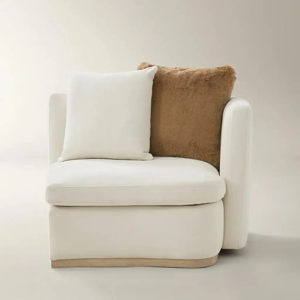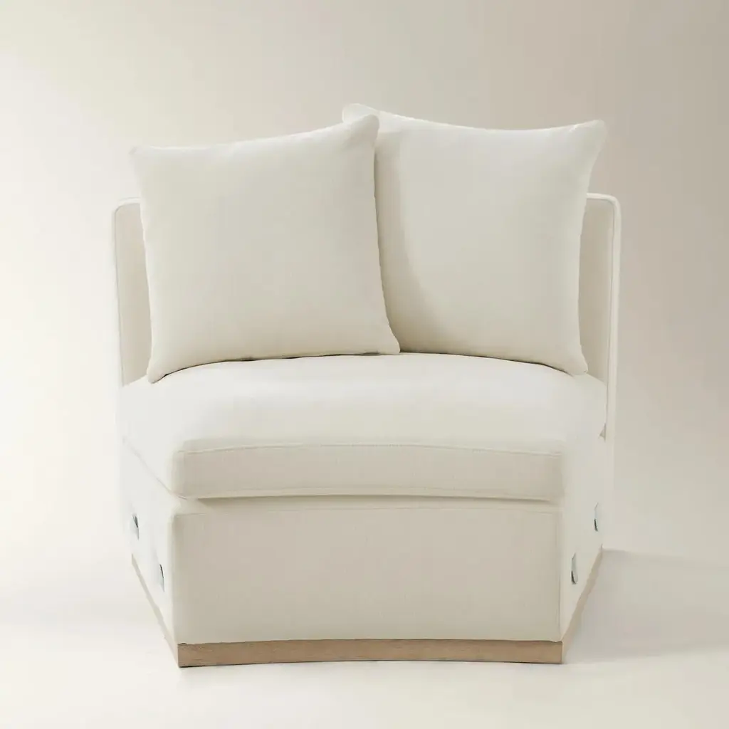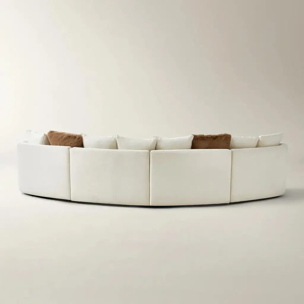 The Stria Sofa in ivory brings sculptural softness and serene comfort to your space. Its curved design creates a sense of flow and intimacy, ideal for small living rooms or open-plan areas. Upholstered in breathable, velvety ivory chenille, this sofa is as refined as it is welcoming. Triple-layer cushioning combines high-density foam, a plush down blend, and ergonomic shaping to deliver a tailored seating experience that supports and cradles in equal measure. Built on a kiln-dried oak frame with handcrafted upholstery details and seamless reconfiguration connectors, this curved chenille sofa pairs artisan quality with everyday luxury.ZG Exclusive