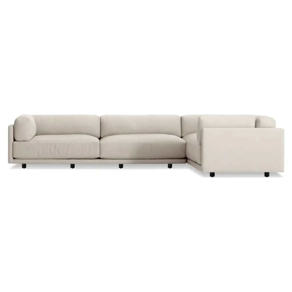 The Sunday L Sectional Sofa from Blu Dot is a luxurious blend of sophistication and comfort. With its thin frame and plush cushions, this couch gracefully elevates any interior. Its recessed legs add an air of elegance, creating the perfect spot to relax in style on the weekend or whenever you so choose. Highlights