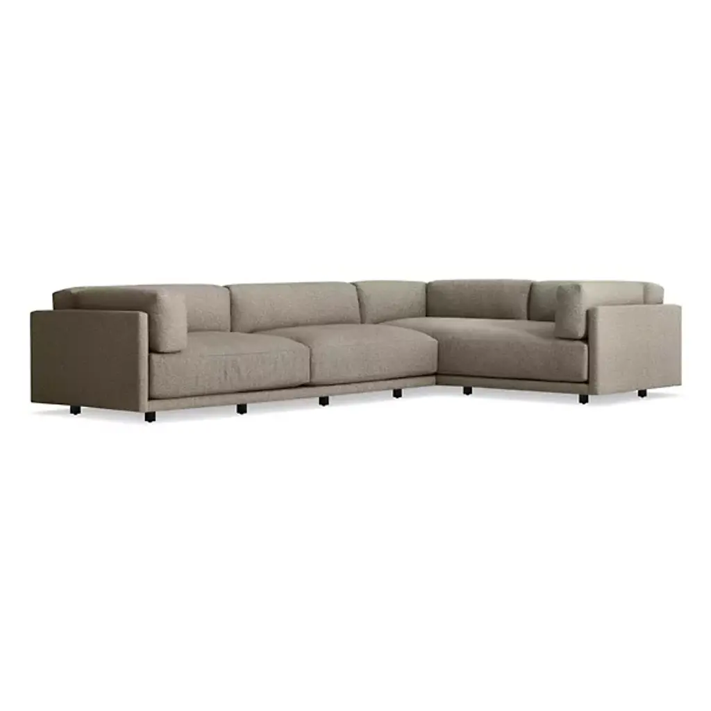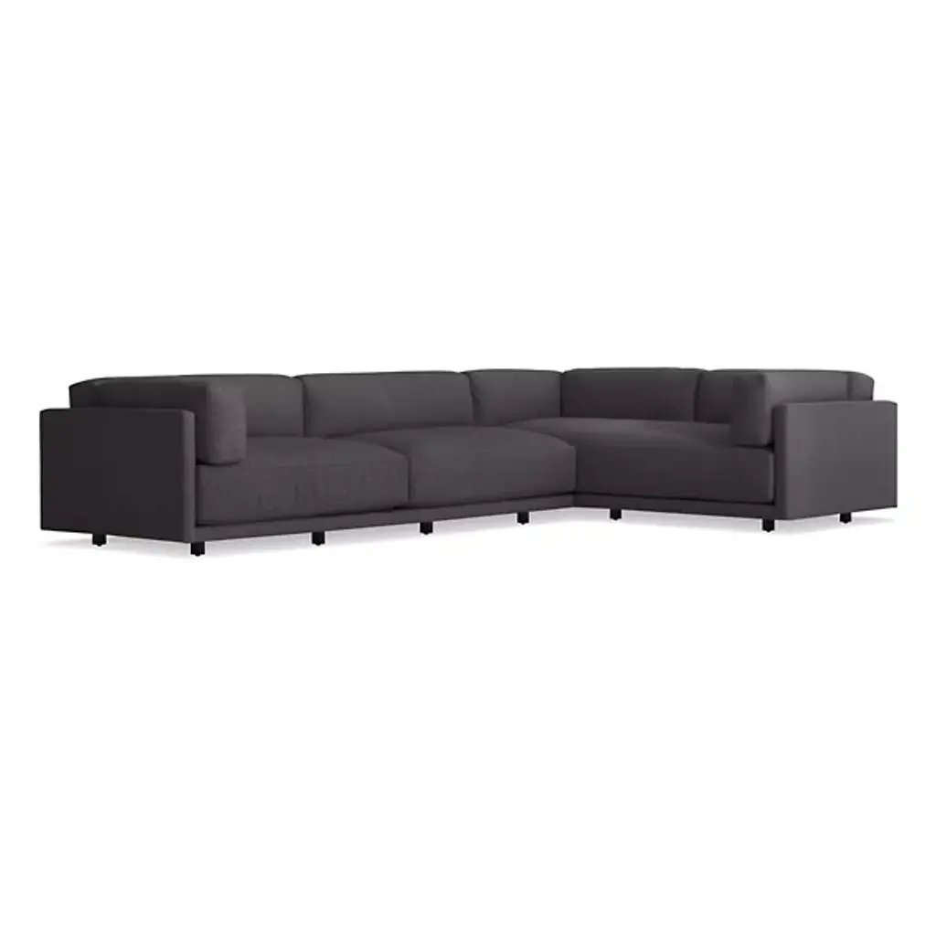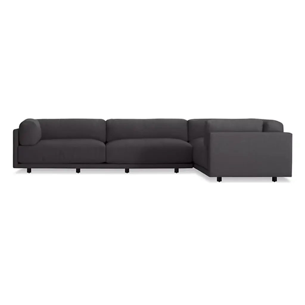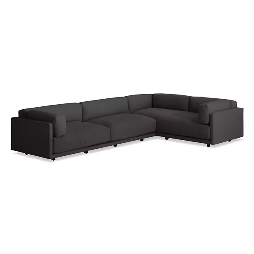 The whole family can relax in style with the Sunday L Sectional Sofa by Blu Dot. Its extra deep seat and lower profile exhibit harmony with Sunday’s minimalistic, recessed leg. Webbing beneath its cushions and its kiln-dried American hardwood frame help keep Sunday sturdy and strong. Sunday offers everlasting comfort with its innerspring core cushions which are surrounded by high resiliency foam and then wrapped in feather and down. Choose the upholstery that first your modern home best.