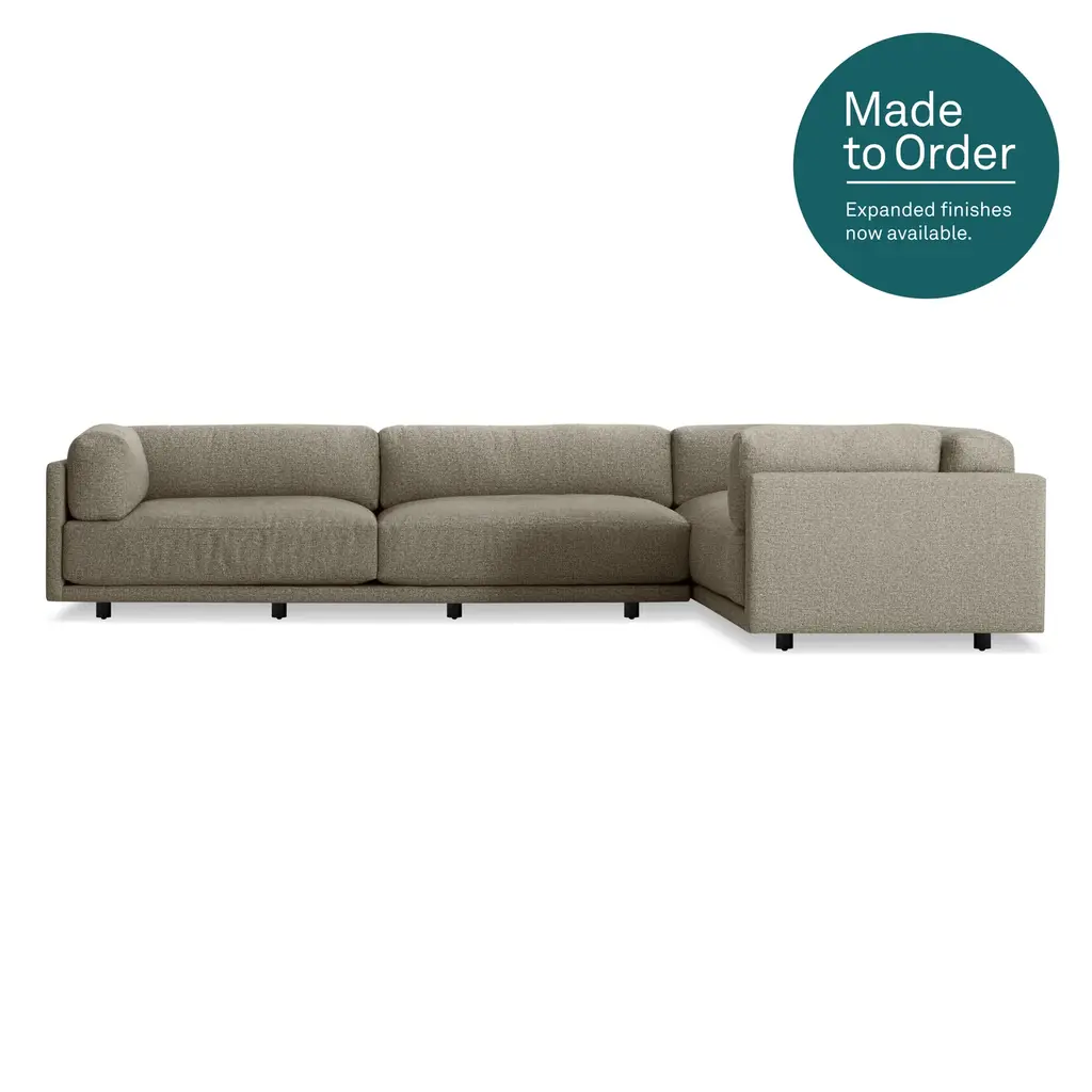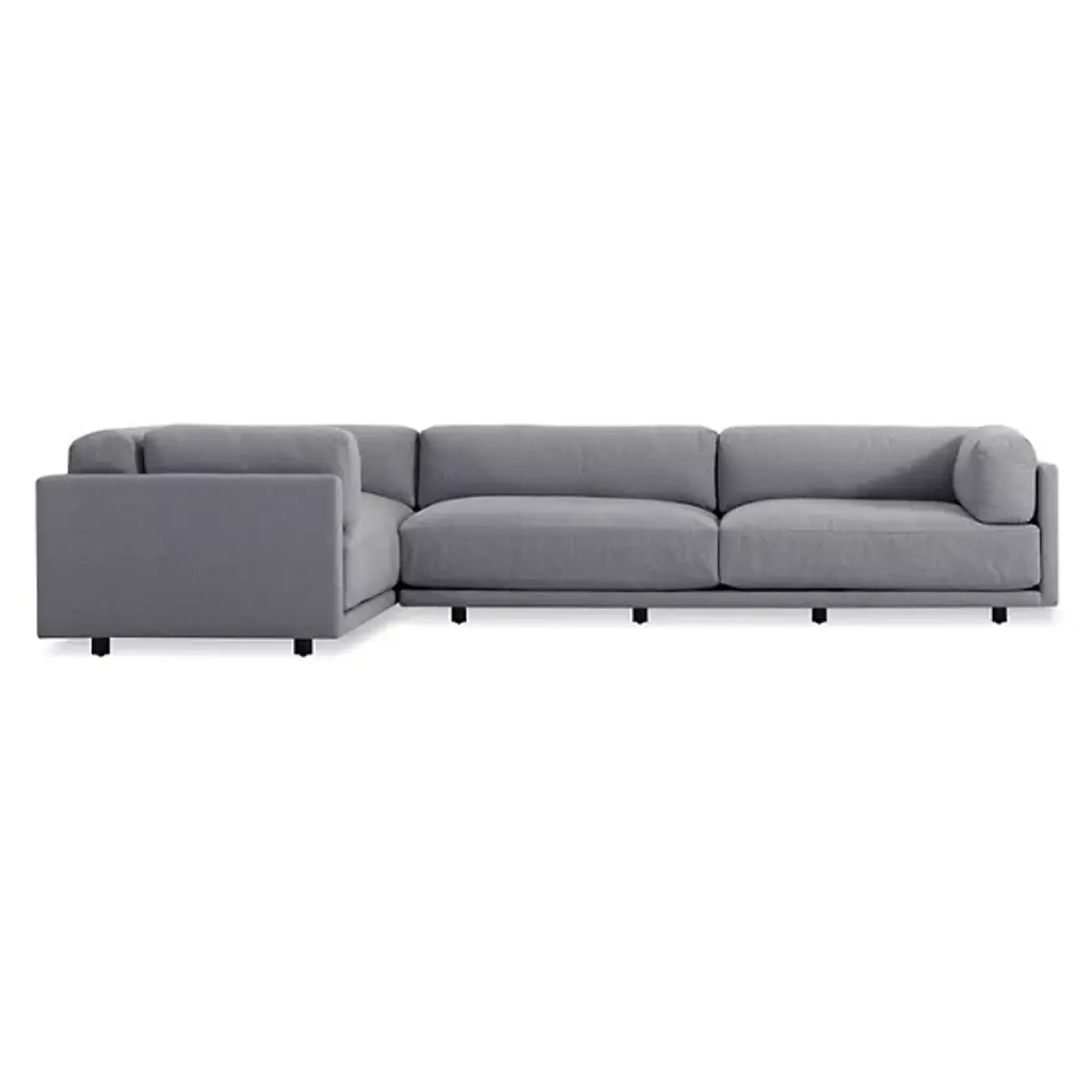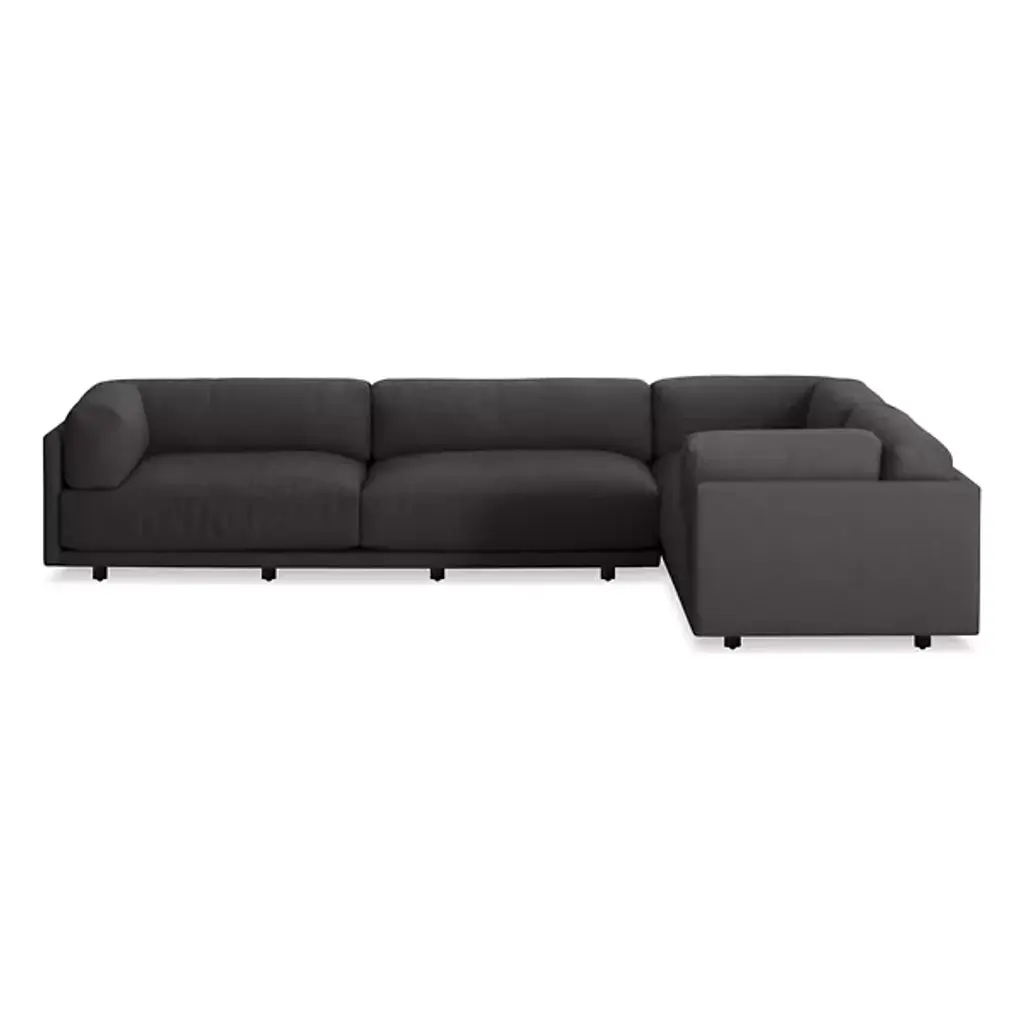 The whole family can relax in style with the Sunday L Sectional Sofa by Blu Dot. Its extra deep seat and lower profile exhibit harmony with Sunday’s minimalistic, recessed leg. Webbing beneath its cushions and its kiln-dried American hardwood frame help keep Sunday sturdy and strong. Sunday offers everlasting comfort with its innerspring core cushions which are surrounded by high resiliency foam and then wrapped in feather and down. Choose the upholstery that first your modern home best.