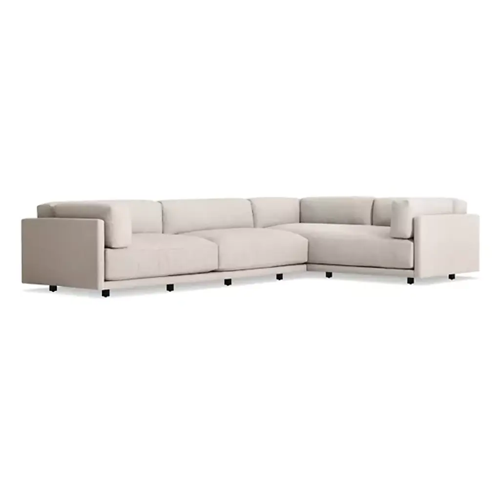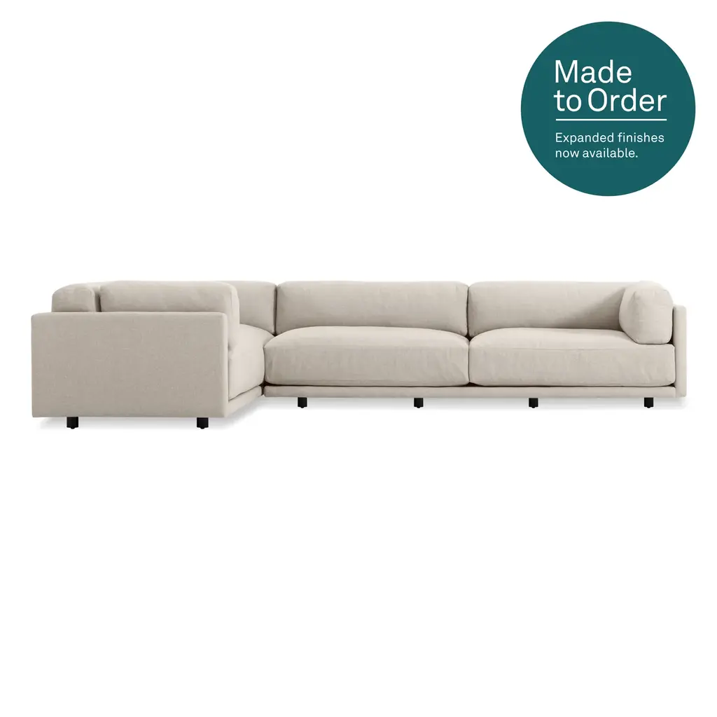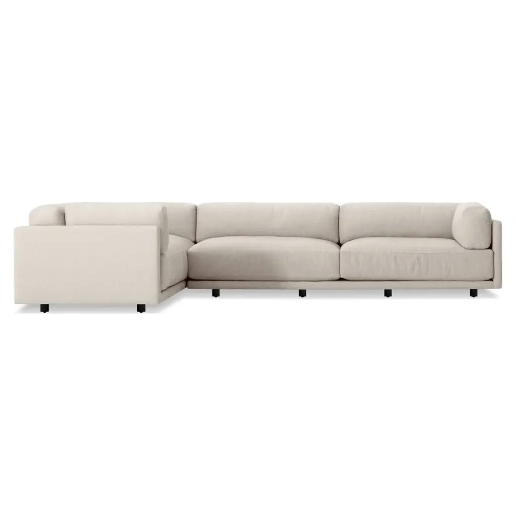 The whole family can relax in style with the Sunday L Sectional Sofa by Blu Dot. Its extra deep seat and lower profile exhibit harmony with Sunday’s minimalistic, recessed leg. Webbing beneath its cushions and its kiln-dried American hardwood frame help keep Sunday sturdy and strong. Sunday offers everlasting comfort with its innerspring core cushions which are surrounded by high resiliency foam and then wrapped in feather and down. Choose the upholstery that first your modern home best.