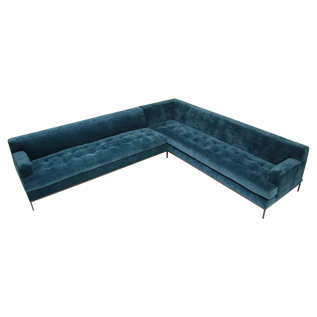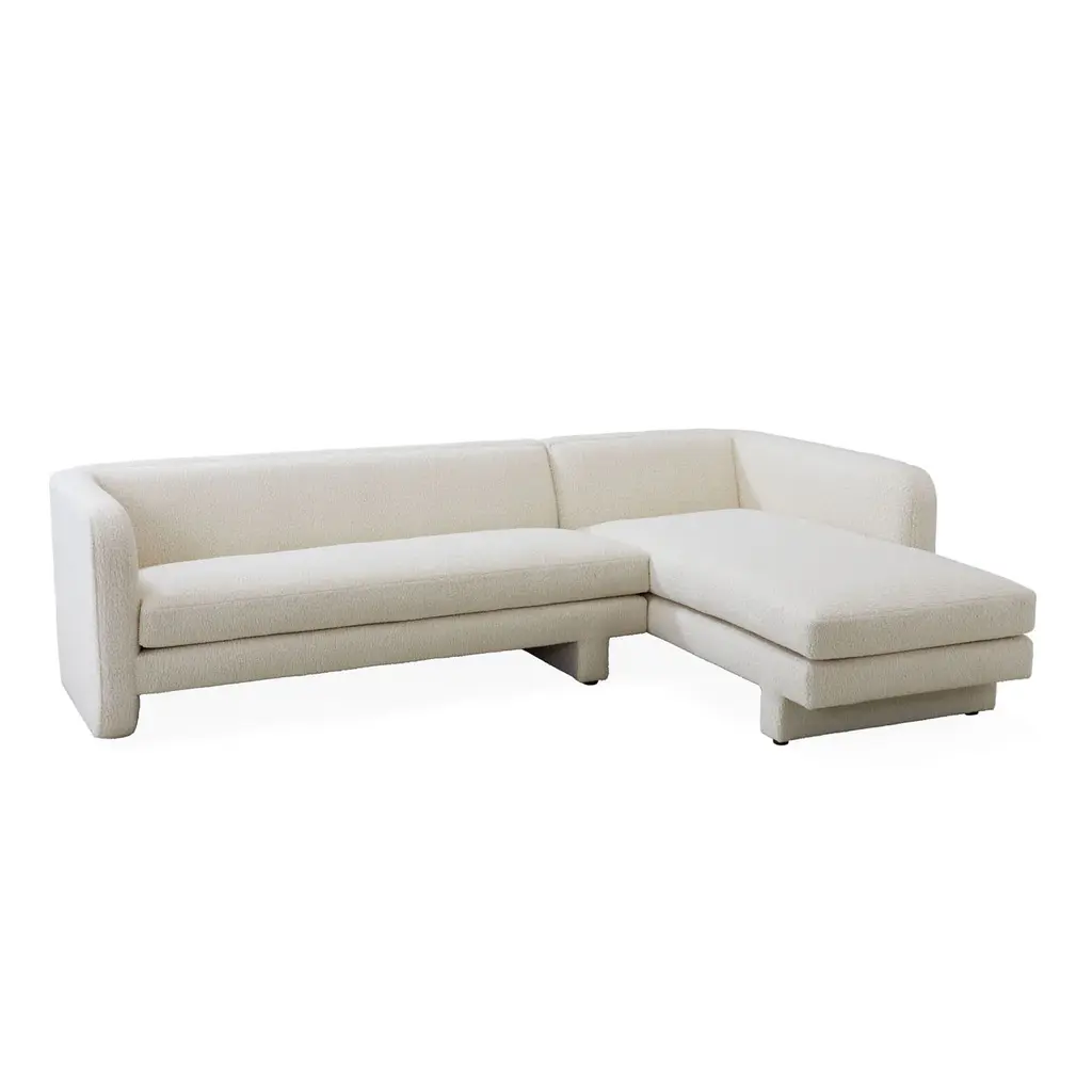 Closed Capsule. Minimalist, modern, and made for cocooning. The streamlined form is softened by rounded corners, an expertly pitched back, and an inviting, soft bench cushion. With modern T-shaped legs, it's a fabulous fit for palatial pads. Cool in a coastal blue velvet and trés après-ski in our ultra-cozy Teddy upholstery—faux shearling made of cut pile bouclé yarns. Available as left- or right- arm facing sectional and sized for sprawling. See More About This Style for more customization options. *Our shipping ETAs may be longer than usual, but safely delivering the looks you love is always our priority.