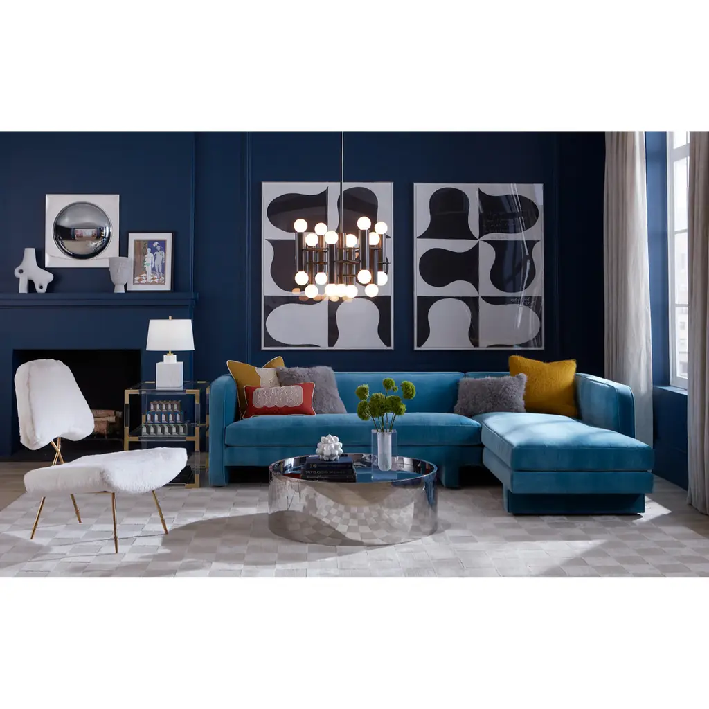 Closed Capsule. Minimalist, modern, and made for cocooning. The streamlined form is softened by rounded corners, an expertly pitched back, and an inviting, soft bench cushion. With modern T-shaped legs, it's a fabulous fit for palatial pads. Cool in a coastal blue velvet and trés après-ski in our ultra-cozy Teddy upholstery—faux shearling made of cut pile bouclé yarns. Available as left- or right- arm facing sectional and sized for sprawling. See More About This Style for more customization options. *Our shipping ETAs may be longer than usual, but safely delivering the looks you love is always our priority.