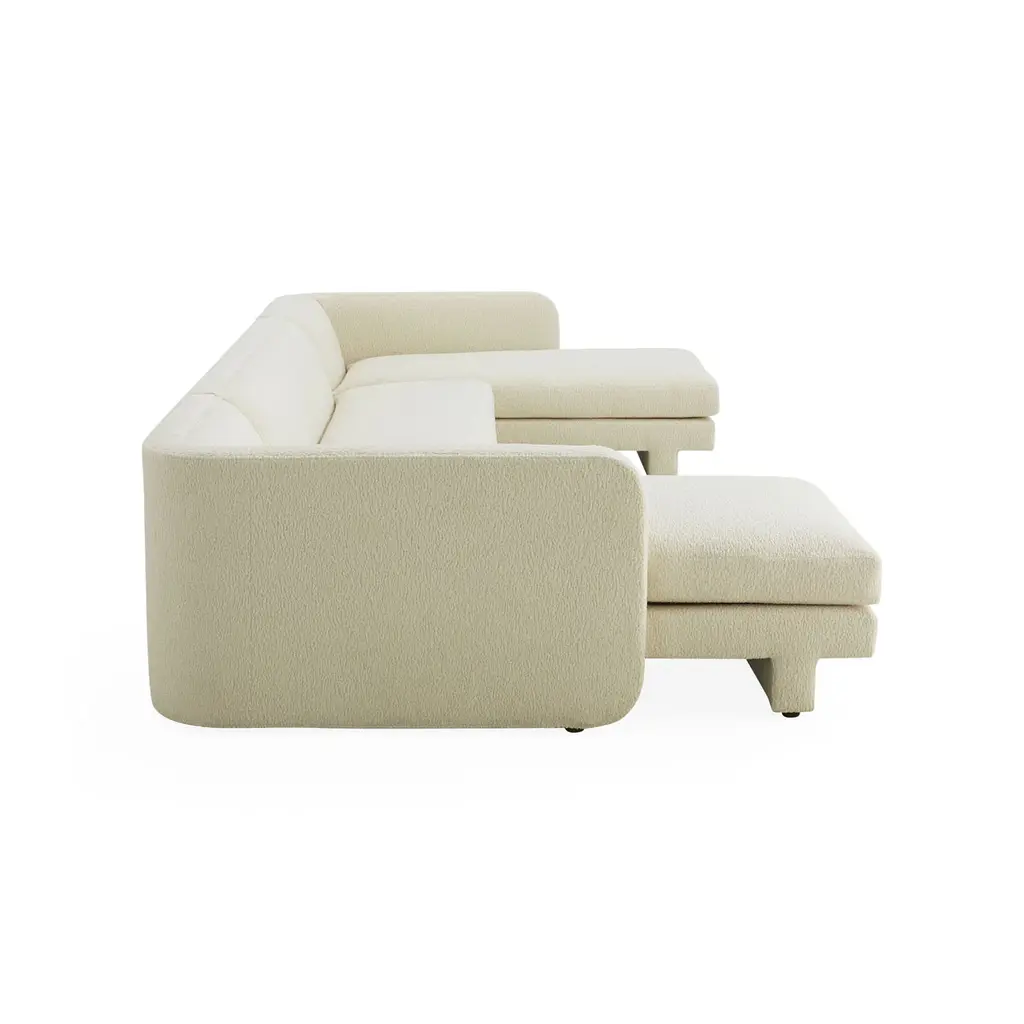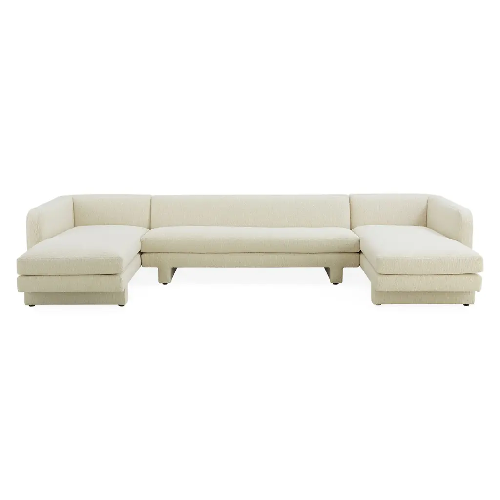 Closed Capsule. Minimalist, modern, and made for cocooning. The streamlined form is softened by rounded corners, an expertly pitched back, and inviting, soft bench cushions. With modern T-shaped legs and an inviting U shape, it's a fabulous fit for palatial pads. Trés après-ski in our ultra-cozy Teddy upholstery—faux shearling made of cut pile bouclé yarns. Sized for sprawling. See More About This Style for more customization options. *Our shipping ETAs may be longer than usual, but safely delivering the looks you love is always our priority.