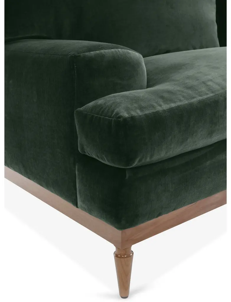 Designed by us and available only at One Kings Lane: Exuding modern elegance, this sectional is comprised of two pieces, each framed in alder with an exposed base and tapered legs. Harbor-blue velvet upholstery makes it stand out in any room, while plush feather-and-down fill ensures long-lasting comfort.