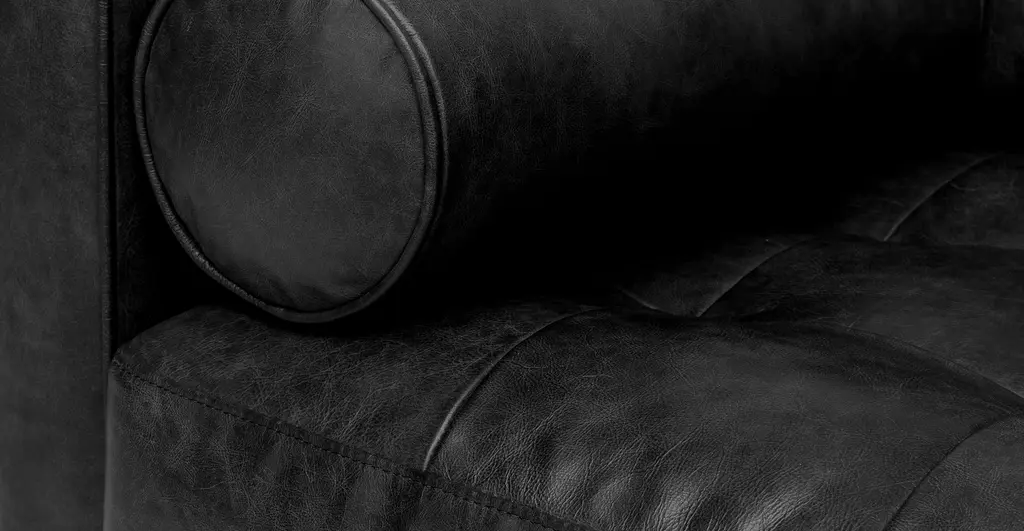 There’s a reason this is our most popular sofa. This modern take on a mid-century classic features clean lines, a tufted benchseat, and three luxuriously stuffed back cushions. Two matching round bolsters complete the look. Natural color variations, wrinkles and creases are part of the unique characteristics of this leather and it will develop a vintage slouchy look with regular use.