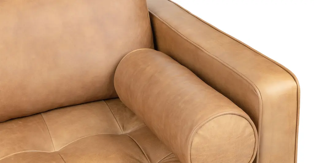 A classic for a reason. Upholstered in full-aniline leather, the sectional plays the same notes as our Sven Sofa, but with more space to stretch out. Over time, the leather will develop a beautiful vintage patina. Natural color variations, wrinkles and creases are part of the unique characteristics of full-aniline leather. It will develop a relaxed vintage look with regular use.