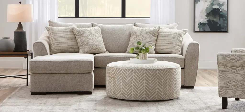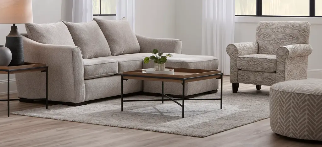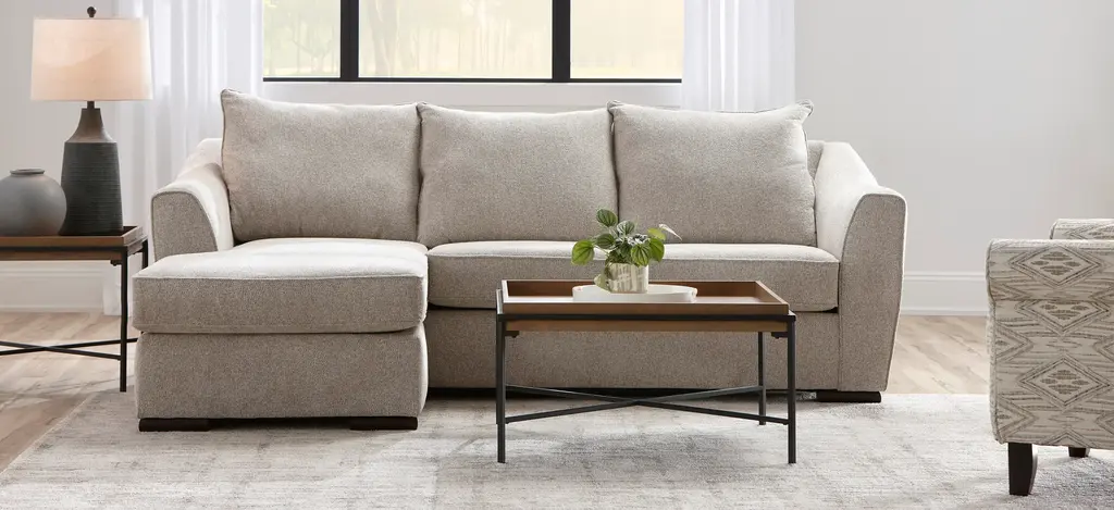 The comfortable Tatum Reversible Sofa Chaise provides the perfect lounging spot in your living room. Its neutral upholstery blends in with a variety of decors and color schemes.