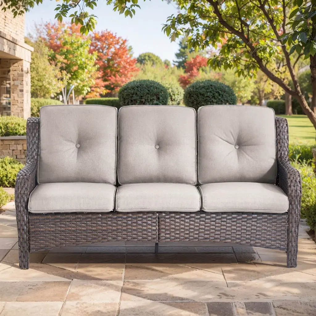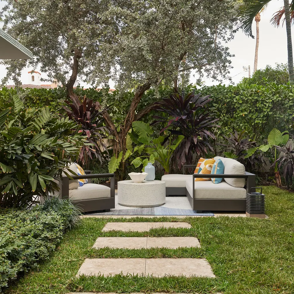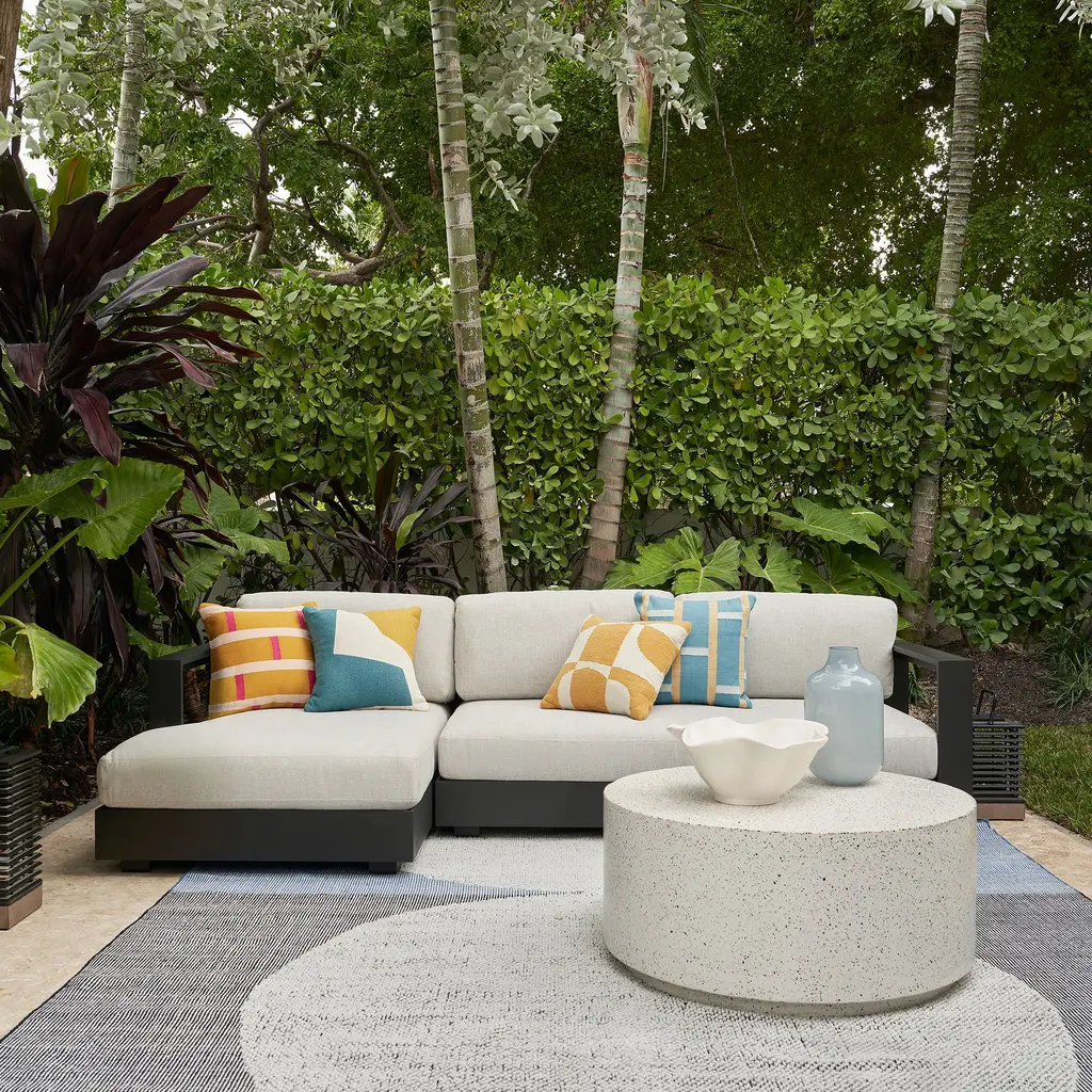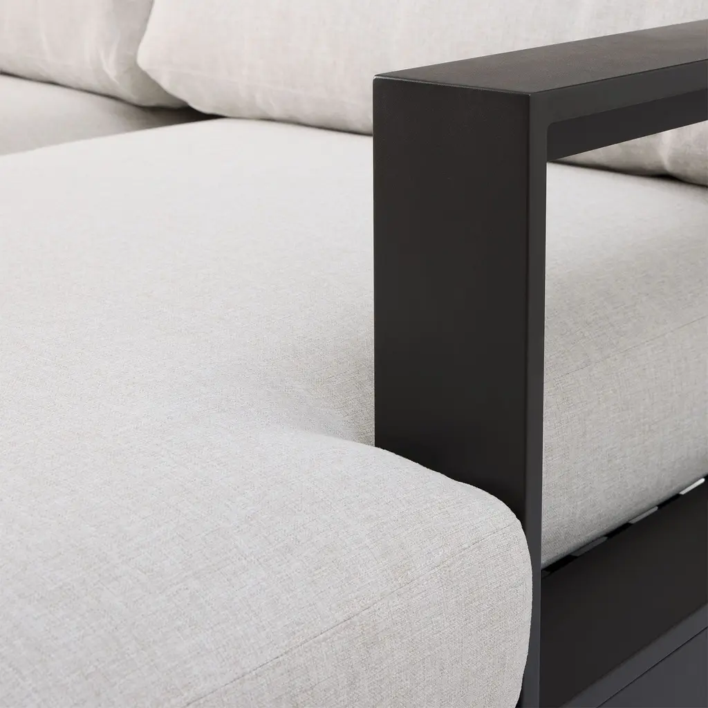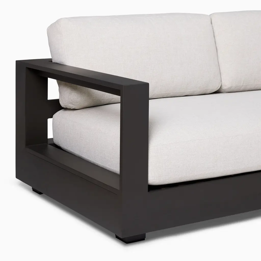 Bold, oversized frame with architectural lines. Sleek, rustproof aluminum for a modern edge. Durable gray cushions offer sophisticated comfort. Contract Grade, so you know it's built to last.
