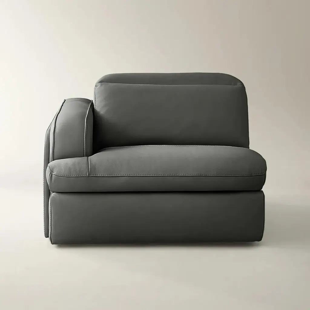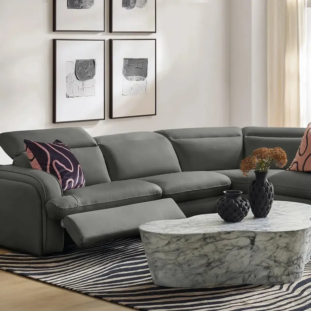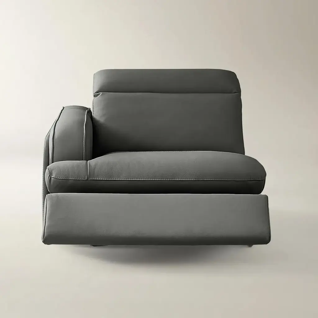 Crafted for those who crave comfort without compromise, the Terra Sectional makes a bold statement in both form and function. Upholstered in supple genuine leather on all touchable surfaces, it delivers luxurious softness, enduring durability, and sleek sophistication. A leather-match finish on the outer frame keeps the look seamless from every angle. This grand-scale sectional features plush, deep seating and a modular silhouette that curves gracefully to anchor your living space. With power headrests and footrests at your command, relaxation becomes effortless. Whether you’re lounging solo or entertaining guests, Terra adapts beautifully to your lifestyle, offering refined versatility and everyday indulgence.