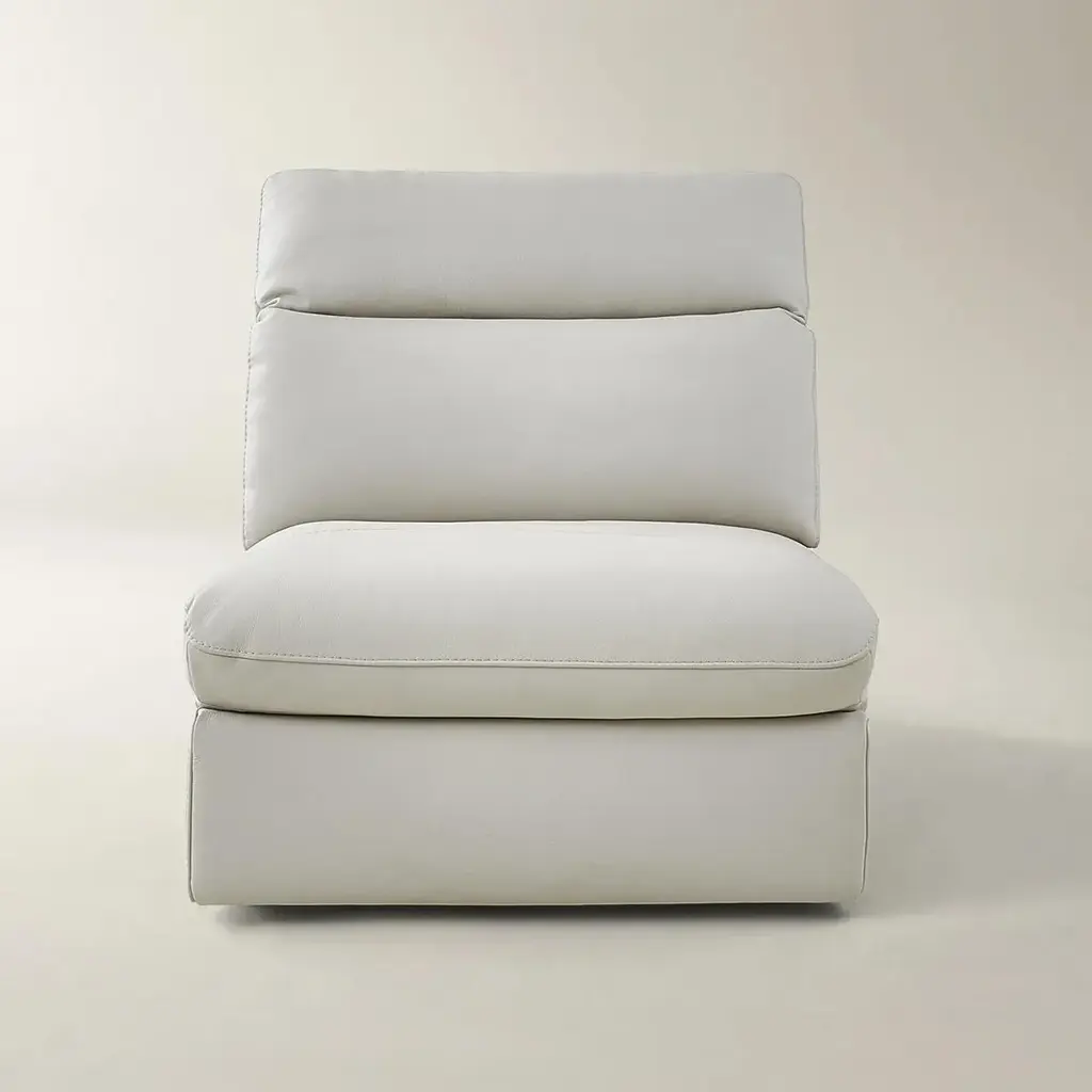 Crafted for those who crave comfort without compromise, the Terra Sectional makes a bold statement in both form and function. Upholstered in supple genuine leather on all touchable surfaces, it delivers luxurious softness, enduring durability, and sleek sophistication. A leather-match finish on the outer frame keeps the look seamless from every angle. This grand-scale sectional features plush, deep seating and a modular silhouette that curves gracefully to anchor your living space. With power headrests and footrests at your command, relaxation becomes effortless. Whether you’re lounging solo or entertaining guests, Terra adapts beautifully to your lifestyle, offering refined versatility and everyday indulgence.