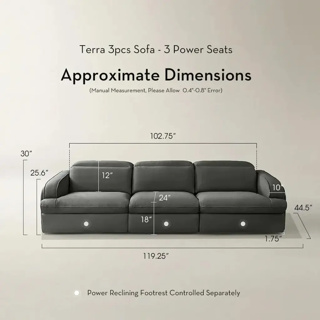 Crafted for those who crave comfort without compromise, the Terra Sectional makes a bold statement in both form and function. Upholstered in supple genuine leather on all touchable surfaces, it delivers luxurious softness, enduring durability, and sleek sophistication. A leather-match finish on the outer frame keeps the look seamless from every angle. This grand-scale sectional features plush, deep seating and a modular silhouette that curves gracefully to anchor your living space. With power headrests and footrests at your command, relaxation becomes effortless. Whether you’re lounging solo or entertaining guests, Terra adapts beautifully to your lifestyle, offering refined versatility and everyday indulgence.