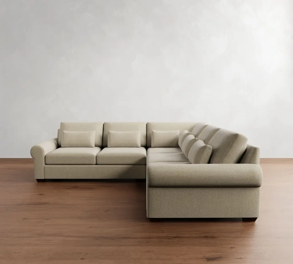 The Crosby Sectional is a testament to the charm of simplicity. With a slender profile that suits spaces small and large, the design is neatly upholstered with cord welts and sits atop tapered legs. Handcrafted in North Carolina.