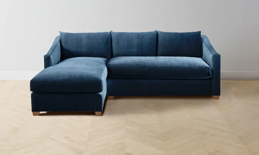 The Crosby Sectional - Performance Velvet Midnight - Chaise Sectional / Chaise Left: 91" Wide / Driftwood Maple