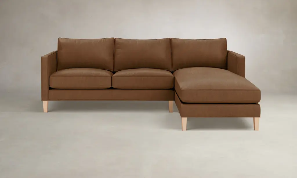 The Crosby Sectional - Tuscan Leather Cognac - Chaise Sectional / Chaise Left: 91" Wide / Pecan Maple