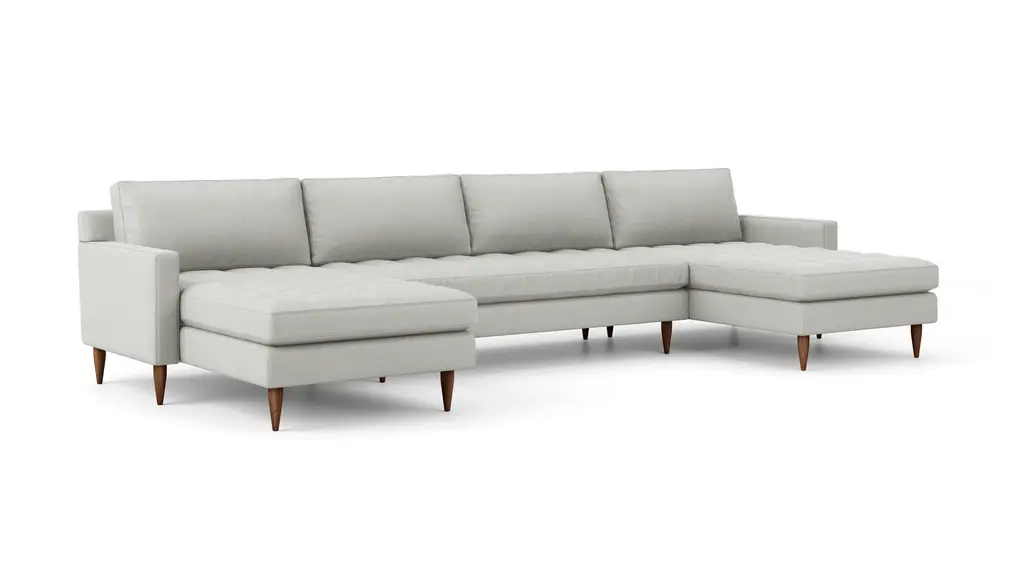 DESIGN Meet the MCM collection: a laid-back spin on classic mid-century modern design. Iconic details like clean clines, solid wood legs and elegant tufting meet a softer, more relaxed loose-back cushion. The result? A look that's effortlessly cool and incredibly comfortable. Handcrafted in the USA. FEATURES Solid Foundation: Our frames are constructed from precision-cut, FSC-certified engineered wood for unmatched strength and stability, featuring reinforced, interlocking joinery for added durability. Customizable Cushion Options: Choose from standard or down alternative cushions. Standard cushions are made from high-quality, high-resiliency CertiPUR-US® foam wrapped in premium fiber, giving you a supportive, comfortable sit and a sleek look that's low maintenance. Down alternative cushions feature a back cushion that's filled with 100% premium fiber and a bench seat cushion with a high-quality, high-resiliency CertiPUR-US® foam core wrapped in down-alternative fiber. Down alternative cushions give you sink-in comfort with a supportive sit & a relaxed look. Regular fluffing keeps your piece looking perfect. CertiPur-US® foam is held to the highest standards of product safety and durability, so you can rest easy. Supportive Webbing Suspension: Designed to maximize comfort, our premium webbing system provides a resilient foundation. Customizable Upholstery: Choose from a vast selection of durable premium and performance fabrics and genuine Italian leather to personalize your MCM Double Chaise Sectional's look.