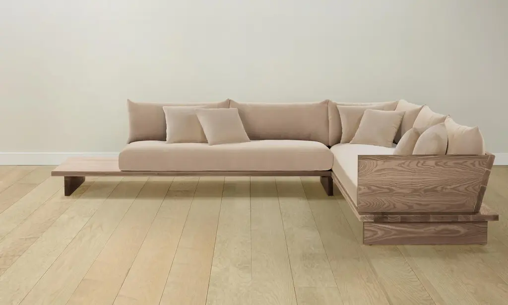 The Muir Sectional - Italian Brushed Wool Cocoa - L Sectional / Left: 120" / Right: 102" / Whitewash Ash