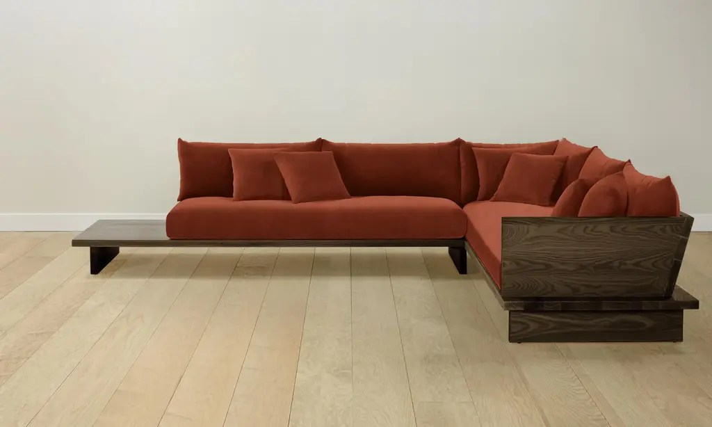 The Muir Sectional - Mohair Crimson - L Sectional / Left: 120" / Right: 102" / Pecan Ash