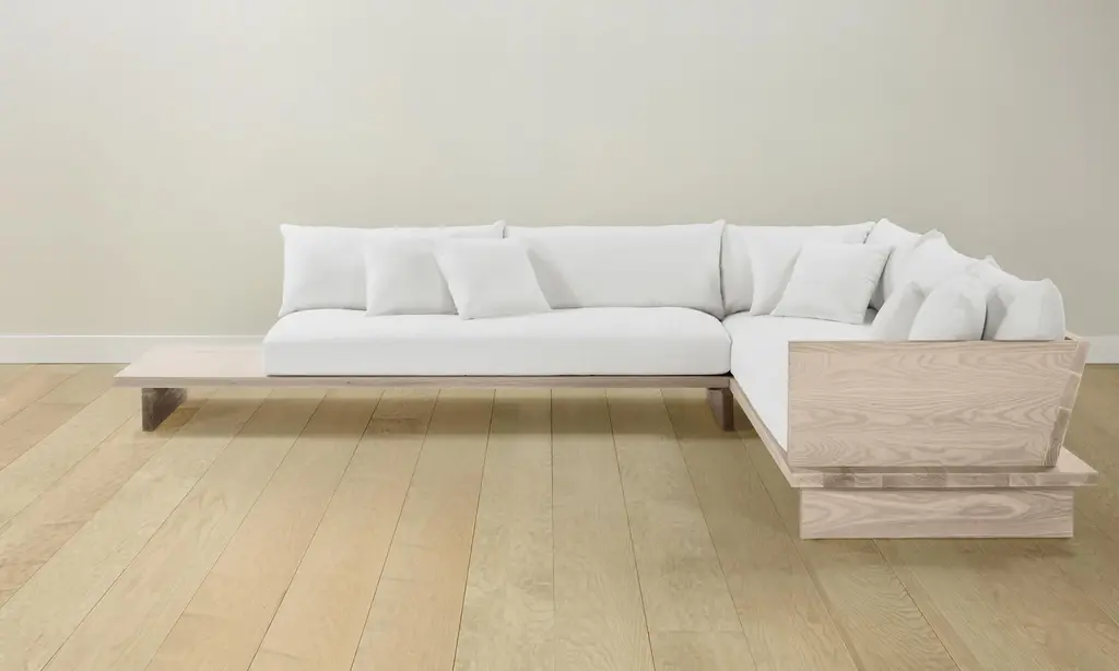 From the woodwork to the tailoring, every element of the Muir Sectional is a display of exquisite artisanship. Its angular frame extends beyond the seat cushion, allowing space for decorative objects or necessities. Handcrafted in North Carolina.
