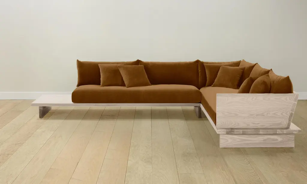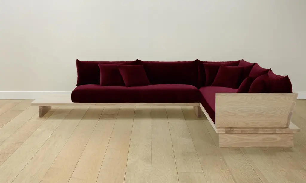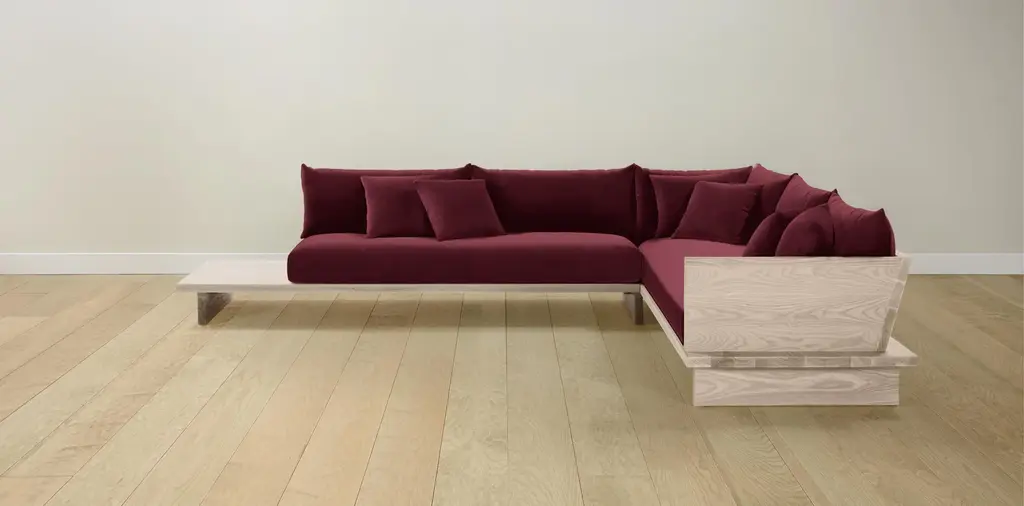 The Muir Sectional - Performance Velvet Merlot - L Sectional / Left: 120" / Right: 102" / Pecan Ash