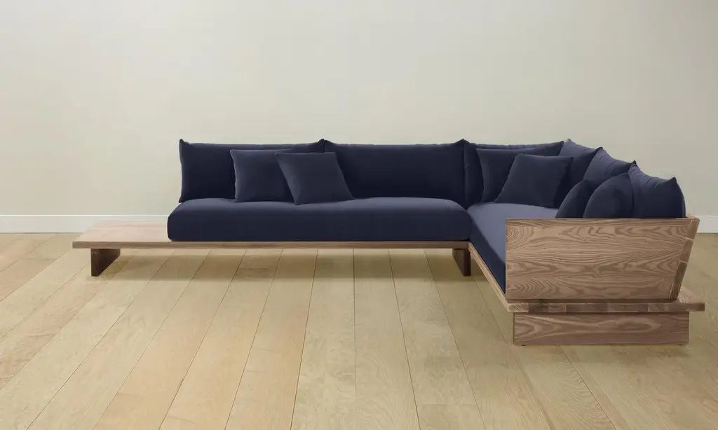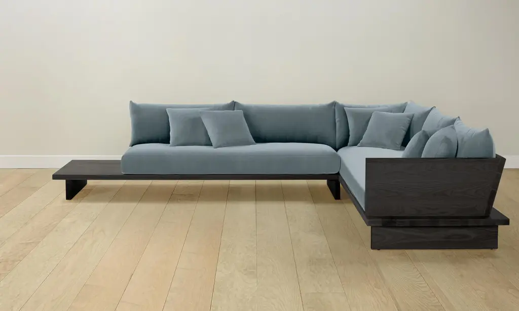 The Muir Sectional - Performance Velvet Sapphire - L Sectional / Left: 120" / Right: 102" / Coffee Ash