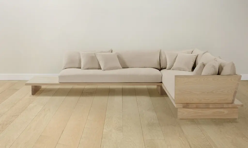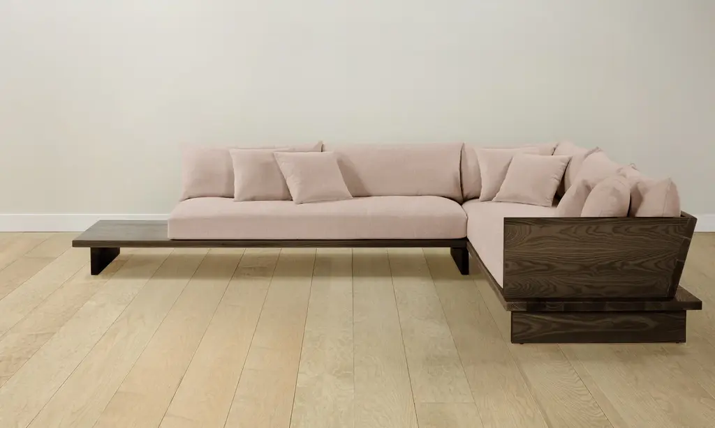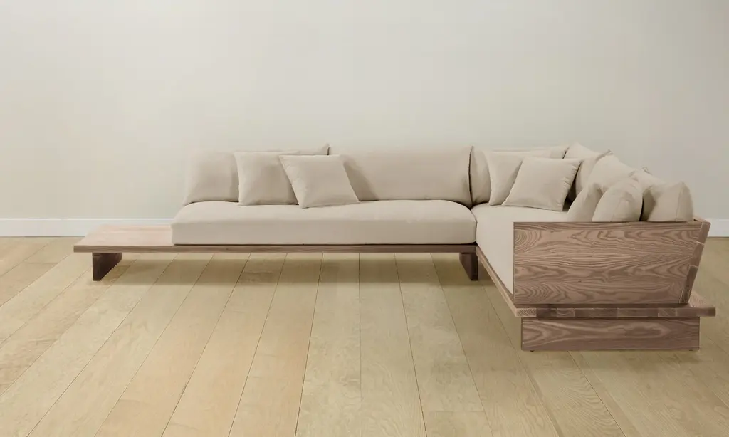 From the woodwork to the tailoring, every element of the Muir Sectional is a display of exquisite artisanship. Its angular frame extends beyond the seat cushion, allowing space for decorative objects or necessities. Handcrafted in North Carolina.
