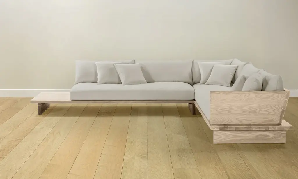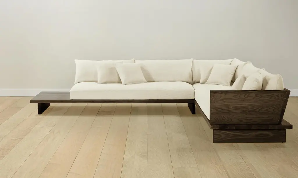 From the woodwork to the tailoring, every element of the Muir Sectional is a display of exquisite artisanship. Its angular frame extends beyond the seat cushion, allowing space for decorative objects or necessities. Handcrafted in North Carolina.