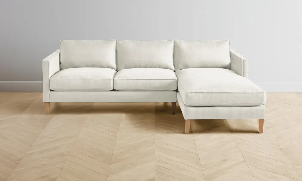 The Sullivan Sectional - Performance Linen Weave Flour - Chaise Sectional / Chaise Right: 116" Wide / Pecan Maple